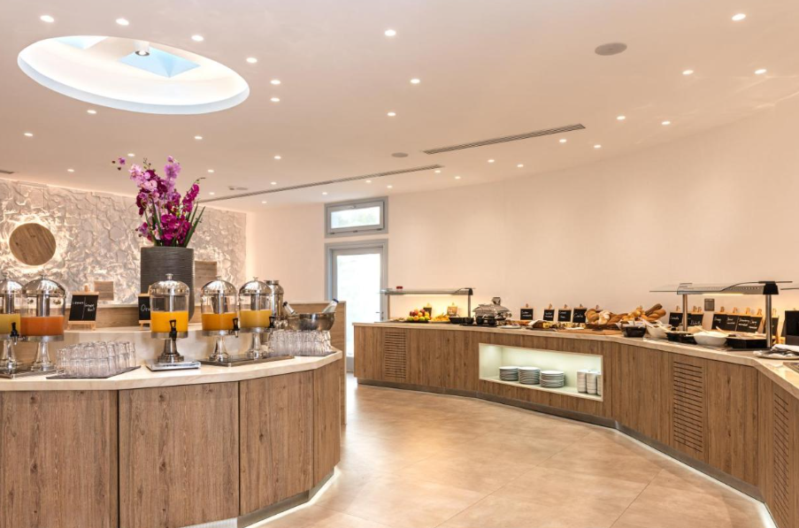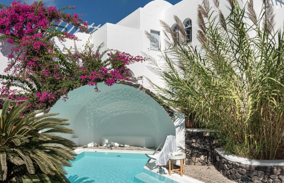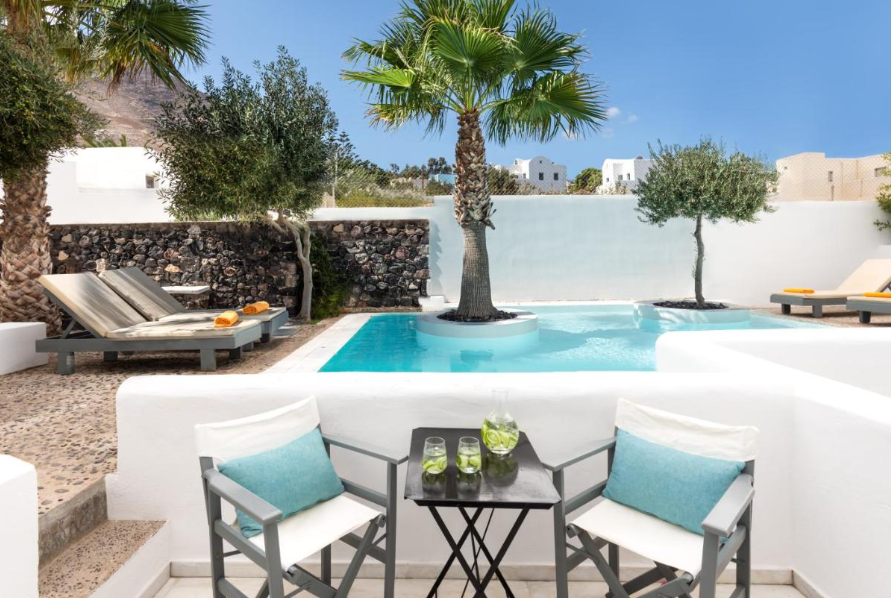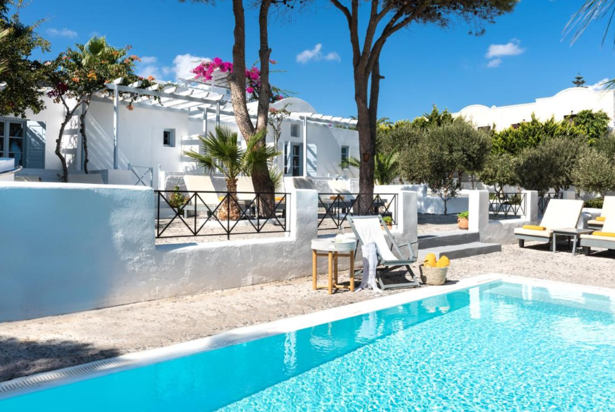 Ubicación - El hotel está situado en la antigua Tera, a pocos metros de las playas de arena negra de Kamari. El centro de la ciudad está a 10 minutos en transporte público.. Instalaciones - El hotel se construyó en el año 1985. Los huéspedes se alojan en 59 habitaciones. Las instalaciones incluyen una caja fuerte. En las zonas públicas hay Wi-Fi a disposición de los huéspedes. Hay diferentes instalaciones gastronómicas entre las que escoger, como un restaurante, un comedor y un bar. Además, hay un jardín. Aquellos que viajen con vehículo propio pueden dejarlo en el aparcamiento del establecimiento. También hay asistencia médica, servicio de habitaciones, una lavandería y una peluquería.. Habitaciones - En el alojamiento hay disponibles habitaciones con aire acondicionado. El equipamiento estándar de la mayoría de las habitaciones incluye un balcón. Las habitaciones cuentan con una cama doble y un sofá cama. Hay disponibles dormitorios separados. También hay cunas y camas supletorias disponibles. Además, hay una caja fuerte y un minibar. Para disfrutar de una estancia agradable, también se ofrecen una nevera y una mini nevera. Para que el huésped disfrute de un confort óptimo, se ofrecen conexión a Internet, un teléfono, un televisor, una radio y Wi-Fi (gratis). Los cuartos de baño están provistos de una ducha y una bañera. Las comodidades incluyen un secador de pelo. El hotel ofrece habitaciones de no fumadores.. Deporte y ocio - Los días más calurosos, los huéspedes pueden disfrutar de un refrescante chapuzón en la piscina cubierta o la piscina al aire libre. En el establecimiento también hay una terraza, así como tumbonas y sombrillas disponibles. La bañera de hidromasaje en la zona de baño promete una relajación total. En el bar de piscina se ofrecen diversos refrescos. En la zona de ocio, el establecimiento ofrece tenis, un gimnasio, un spa, una sauna, un baño de vapor y masajes, así como, por un cargo extra, clases de gimnasia. Comidas - El alojamiento ofrece, como servicio gastronómico, la posibilidad de reservar alojamiento con desayuno y media pensión. Se ofrece desayuno y cena. También hay platos especiales disponibles, como platos vegetarianos.. Tarjetas de crédito - En el hotel se aceptan las siguientes tarjetas de crédito: American Express, Visa y MasterCard..
