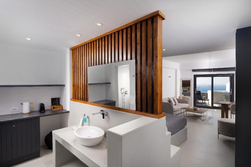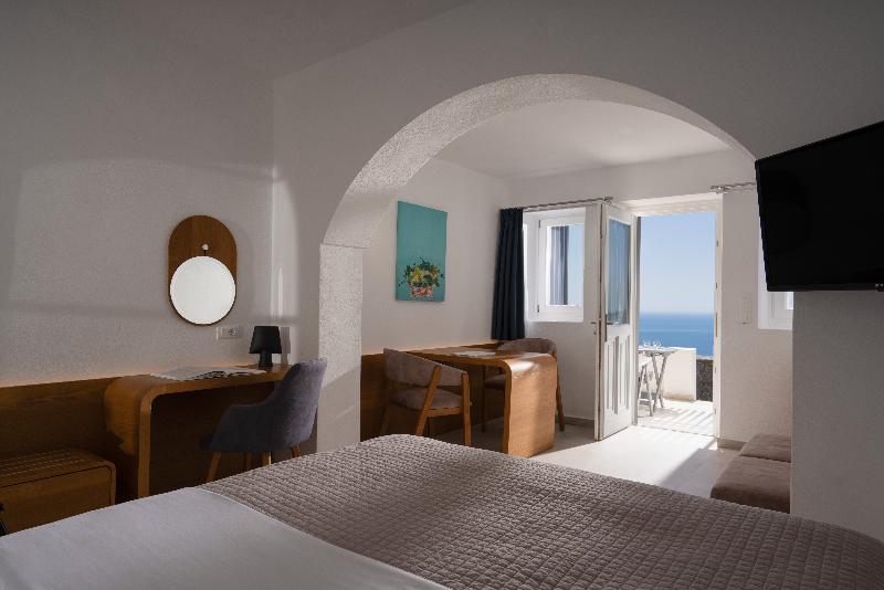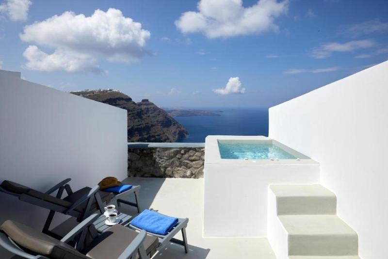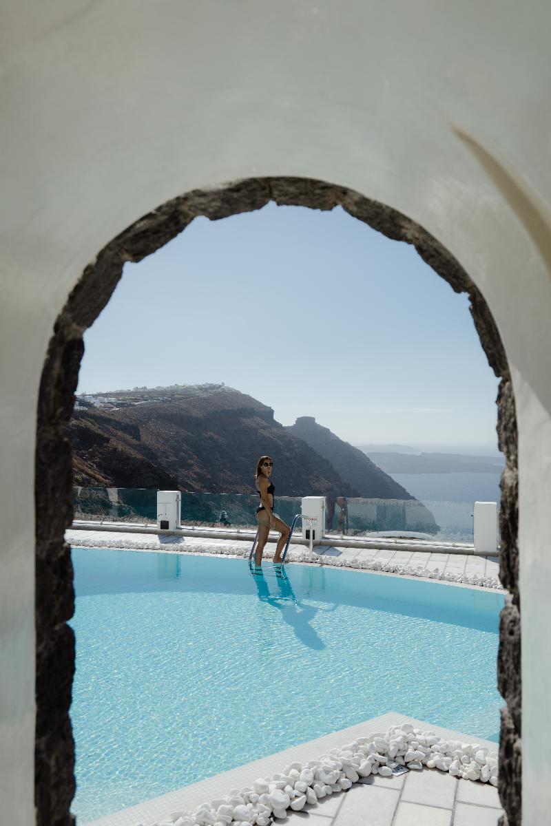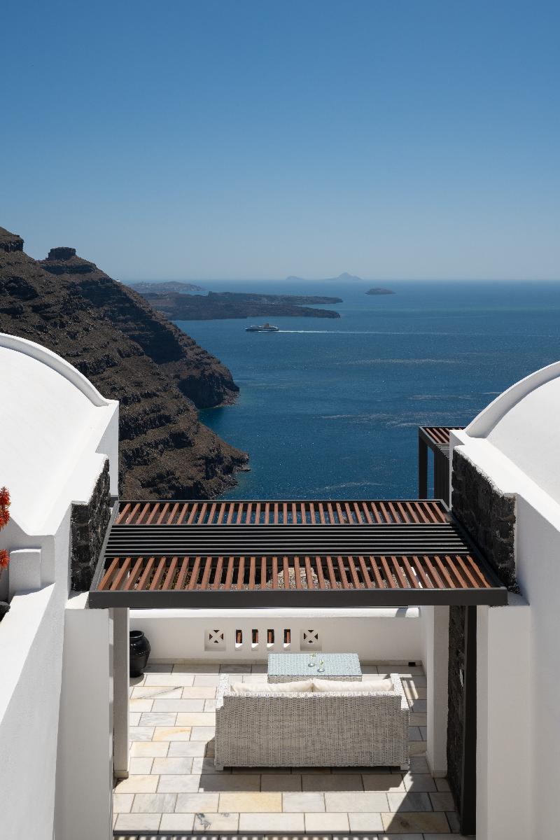En uno de los mejores lugares de Imerovigli, se encuentra Santorini Princess Luxury SPA Hotel. Este hotel es una verdadera joya de la región, ya que combina armoniosamente las características tradicionales de Santorini con un lujo discreto. Todos los espacios ofrecen magníficas vistas de la Caldera y la puesta de sol. Los espacios bien diseñados y los colores y materiales cuidadosamente seleccionados caracterizan todas las áreas. Suelos de mármol y objetos de arte decoran todas las habitaciones y zonas comunes de Santorini Princess Luxury SPA Hotel, dándole un aire de lujo. Lo que hace único a Santorini Princess Luxury SPA Hotel es que es el único suspendido sobre el golfo de la Caldera. Los tratamientos de spa, en combinación con la atmósfera relajante, te rejuvenecerán y te harán comprender por qué este hotel es tan especial. ¡Todo lo que tienes que hacer es relajarte y dejar que te mimemos!