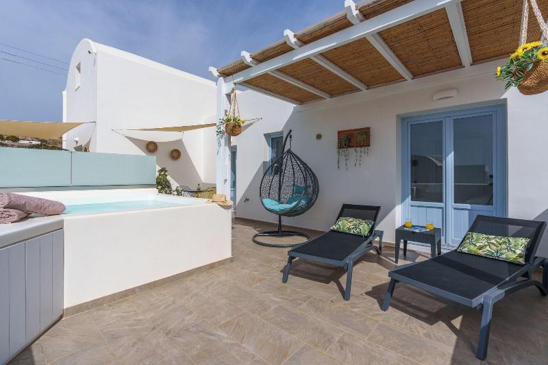 Ubicado en Emporio Santorini en la región de Cícladas, SantoRossa Luxury Villas ofrece alojamiento con wifi y estacionamiento privado gratuitos, además de acceso a una bañera de hidromasaje. El apartamento cuenta con terraza, vistas a la montaña, área de estar, TV de pantalla plana con canales vía satélite, cocina totalmente equipada con nevera y microondas, y baño privado con ducha y artículos de aseo gratuitos. Algunas unidades incluyen balcón o patio con vistas a la ciudad. Los huéspedes pueden relajarse en el jardín del establecimiento. La playa de Perivolos se encuentra a 2, 2 km del alojamiento, mientras que la playa de Perissa está a 2, 9 km. El aeropuerto más cercano es el Aeropuerto Internacional de Santorini, a 10 km de SantoRossa Luxury Villas. El establecimiento ofrece un servicio de traslado al aeropuerto por un suplemento.