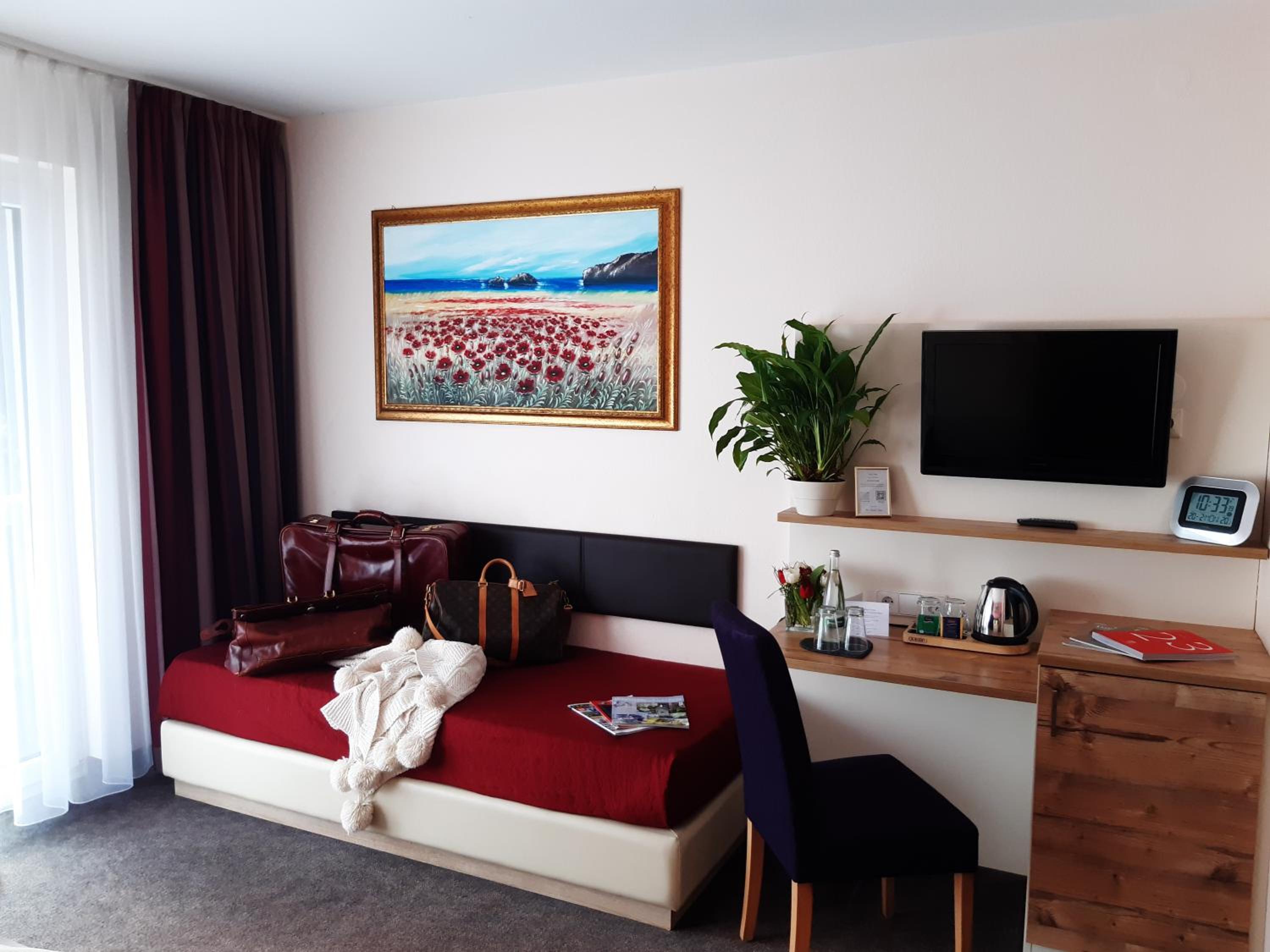 Las instalaciones y servicios incluyen aire acondicionado, wifi gratuito, aparcamiento y bar (con cargo adicional). La habitación cuenta con aire acondicionado, TV y baño privado.
