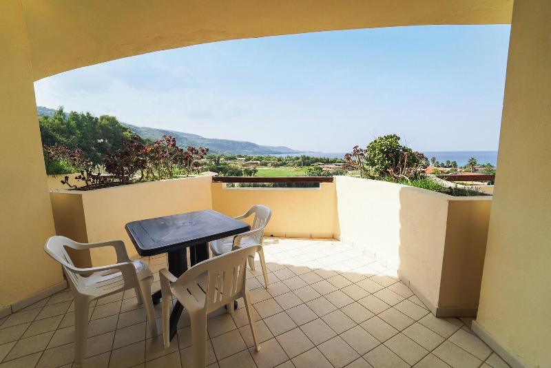 El atractivo Tirreno Resort en Parghelia, Calabria, ofrece impresionantes vistas de la cos...