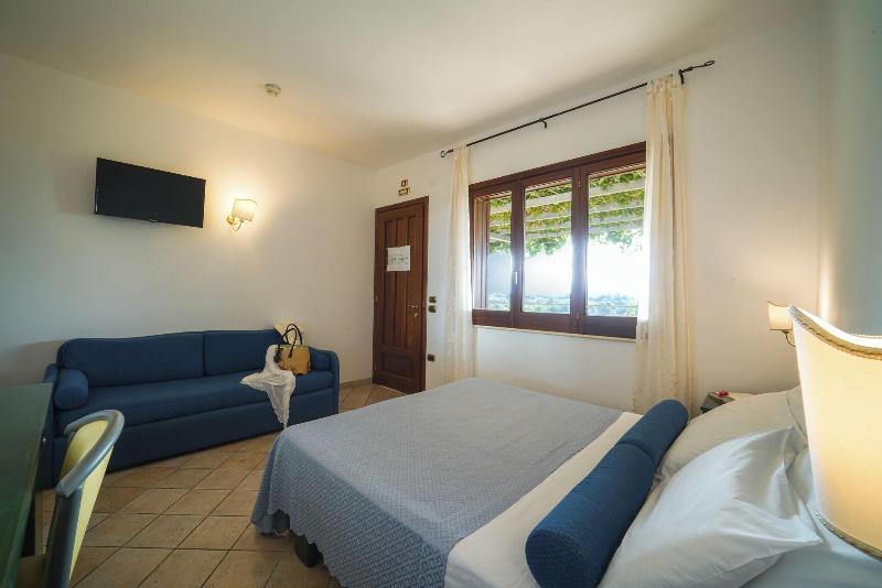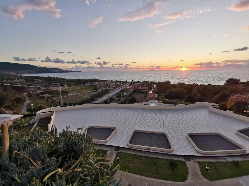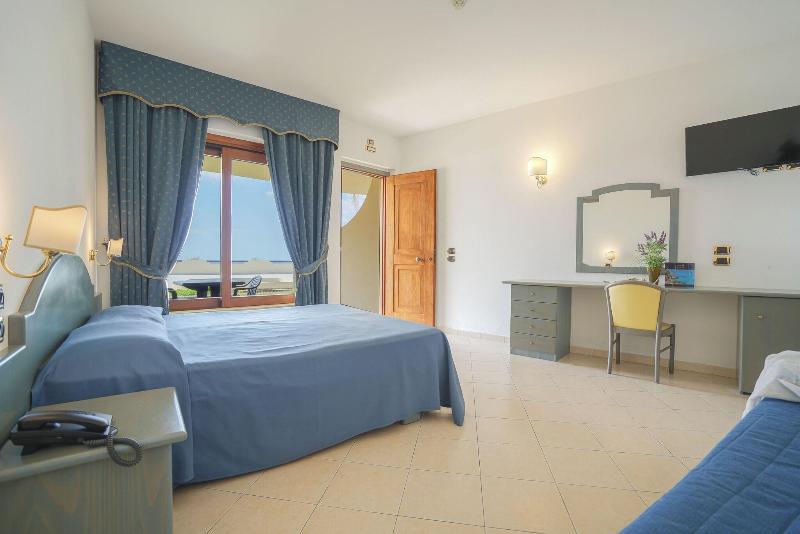El hotel se encuentra ubicado en una suave pendiente, al borde de una meseta que desciende hacia una encantadora playa privada. Esta propiedad se sitúa en la ladera de una colina, ofreciendo a sus huéspedes acceso directo a una playa privada. El hotel goza de un hermoso entorno, rodeado de extensos terrenos y jardines con bonitas macetas de granito, llenas de flores y plantas exóticas. Su excelente ubicación se complementa con amplios balcones en las habitaciones, una piscina con terraza solárium y un restaurante con patio, todo ello con espectaculares vistas panorámicas al mar y a las Islas Eolias. Por las tardes, podrás relajarte y disfrutar de una puesta de sol inolvidable. Hay un club infantil para niños de 3 a 7 años, con áreas de juego y juegos, así como proyecciones de películas y actividades deportivas. Además, hay un club para niños de 7 a 12 años, con una variedad de torneos, juegos y espectáculos. El club junior para jóvenes de 12 a 16 años ofrece diversas actividades grupales y deportivas. Otras instalaciones del hotel, que cuenta con aire acondicionado, incluyen un vestíbulo, un bar y un amplio aparcamiento para quienes lleguen en coche. Las habitaciones son de nueva construcción y están lujosamente amuebladas. Cada una ofrece TV vía satélite, aire acondicionado, minibar, caja fuerte, línea telefónica externa con conexión a Internet, ducha, bañera y secador de pelo. Todas las habitaciones disponen de calefacción y aire acondicionado regulables individualmente. Hay una piscina y una terraza solárium en los terrenos del hotel. Se proporcionan tumbonas y sombrillas. Los entusiastas del fitness pueden entrenar en el gimnasio del hotel. El dedicado equipo de personal ofrece una variedad de programas diferentes para huéspedes de todas las edades. El desayuno se sirve en forma de bufé continental. El almuerzo y la cena están disponibles tanto en bufé como a la carta.