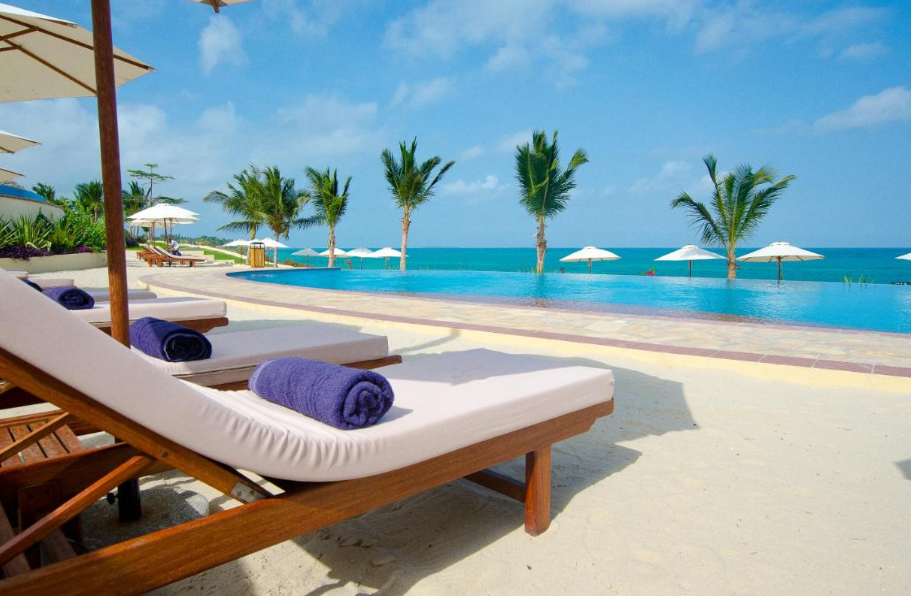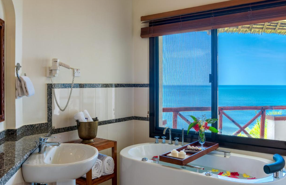 Los techos de makuti y las brillantes torres árabes del lujoso Sea Cliff Resort and Spa, en un acantilado con vistas al océano Índico, crean un exótico escenario para los viajeros que desean escapar a la belleza tropical de África Oriental. Enclavado en la costa noroeste de Zanzíbar, a solo veinticinco minutos de la magia histórica de Stone Town, quienes visitan Sea Cliff suelen relajarse en cuanto llegan a este lujoso oasis. La paleta de colores naturales en tonos crema y dorado se complementa con muebles antiguos que reflejan la historia ancestral de la isla.
