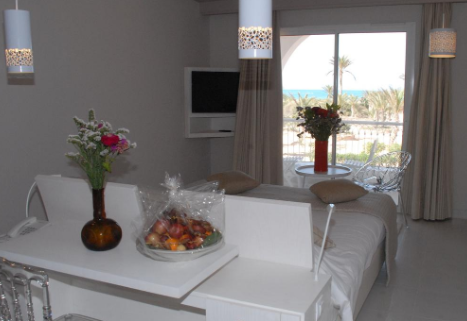 Ubicación - Los huéspedes pueden disfrutar de un excelente complejo costero en la costa norte de la isla de Djerba. Al pie del faro de Taguermess se halla este hotel, en el exclusivo frente marítimo arenoso y en el corazón de un palmeral de 11 hectáreas. El aeropuerto internacional de Zarzis (Djerba) queda a una distancia aproximada de 25 km.. Instalaciones - Este pueblo de vacaciones se construyó en 1991. Los huéspedes se sentirán como en su casa en una de las 354 habitaciones. En el complejo turístico los huéspedes son recibidos en el vestíbulo con servicio de recepción las 24 horas y servicio de registro y salida las 24 horas. Las instalaciones incluyen un guardarropa, una caja fuerte, una oficina de cambio y un cajero automático. Los huéspedes pueden conectarse a Internet en las zonas públicas mediante Wi-Fi (por un cargo extra). En cuanto a opciones gastronómicas, el complejo cuenta con un restaurante, un comedor, una sala de desayunos, una cafetería y un bar. Hay disponibles un supermercado, una tienda de recuerdos y otras tiendas. En el recinto del alojamiento hay un precioso jardín y un parque infantil. Aquellos que viajen con vehículo propio pueden dejarlo en el aparcamiento del pueblo de vacaciones. También hay una guardería, asistencia médica, servicios de traducción, un servicio despertador, una lavandería y una peluquería. Los huéspedes más activos, con ganas de descubrir los alrededores en bicicleta, sabrán apreciar el servicio de alquiler de bicicletas.. Habitaciones - En las habitaciones hay aire acondicionado, calefacción central y un cuarto de baño. En la mayoría de las habitaciones es posible disfrutar de las vistas desde un balcón. Las vistas al mar crean un buen ambiente en los alojamientos. Las habitaciones disponen de cama doble o cama king size. Hay disponibles dormitorios separados. También hay cunas y camas supletorias disponibles. Además, hay una caja fuerte y un minibar. Las instalaciones estándar incluyen una nevera y una mini nevera. Para que el huésped disfrute de un confort óptimo, se ofrecen conexión a Internet, un teléfono y un televisor. Es posible reservar habitaciones aptas para personas en silla de ruedas. Los cuartos de baño están provistos de una ducha y una bañera. Las comodidades incluyen un secador de pelo. Hay habitaciones familiares especiales para familias con niños.. Deporte y ocio - Los días más calurosos, los huéspedes pueden disfrutar de un refrescante chapuzón en la piscina cubierta o la piscina al aire libre. En el establecimiento también hay una terraza, así como tumbonas y sombrillas disponibles. La bañera de hidromasaje en la zona de baño promete una relajación total. También hay un bar de piscina. Se ofrecen numerosas actividades deportivas diferentes en el complejo turístico como, por ejemplo, tenis, petanca, vóley-playa, minigolf, golf y tiro con arco y, por un cargo extra, equitación. El programa de deportes acuáticos del complejo incluye esquí acuático, windsurf, moto acuática, banana acuática, piragua, catamarán, kayak y gimnasia acuática. El alojamiento ofrece numerosas posibilidades para practicar actividades deportivas de interior, como ping-pong, clases de gimnasia y aeróbic además de, por un cargo extra, un gimnasio y billar. En el pueblo de vacaciones se ofrecen variadas opciones de bienestar, que incluyen un spa, un hamam y un salón de belleza. Además, por un cargo extra, los huéspedes tienen a su disposición un baño de vapor, masajes y un solárium. La diversión durante el tiempo libre está garantizada gracias a opciones de entretenimiento como un programa de animación, música en vivo, una discoteca, un club infantil y una discoteca infantil. Copyright GIATA 2004 - 2017. Multilingual. Comidas - Los huéspedes pueden escoger entre las siguientes opciones gastronómicas: desayuno, almuerzo o cena. Además, el complejo turístico cuenta con aperitivos. Una atracción especial es la cocina en vivo. Se sirven bebidas sin alcohol y bebidas alcohólicas.. Tarjetas de crédito - En el complejo se aceptan las siguientes tarjetas de crédito: Visa y MasterCard..