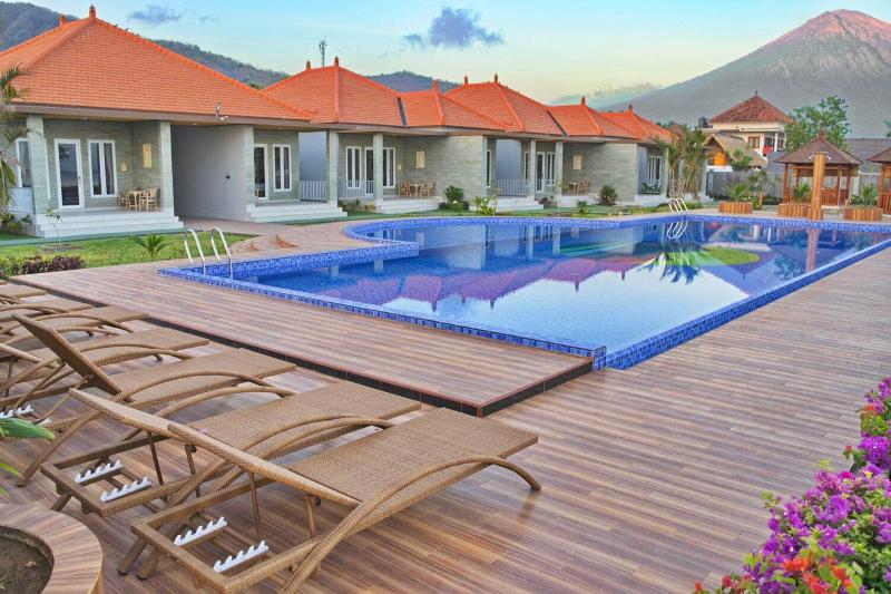 Disfruta de opciones recreativas como una piscina al aire libre o contempla las vistas desde la terraza y el jardín. Los servicios adicionales de este hotel incluyen wifi gratuito, servicio de conserjería y un área de pícnic. Come algo en uno de los 2 restaurantes del hotel, o quédate y aprovecha el servicio a la habitación (con horario limitado). También se ofrecen refrigerios en la cafetería. Termina el día con una copa en el bar o lounge. Se sirve desayuno continental todos los días con un coste adicional. Los servicios destacados incluyen acceso a internet por cable gratuito, caja fuerte en la recepción y café o té en las zonas comunes. ¿Planeas un evento en Karangasem? Este hotel cuenta con 200 metros cuadrados de espacio, que incluyen un centro de conferencias y una sala de reuniones. Se proporciona servicio de traslado al aeropuerto (ida y vuelta) con un suplemento (disponible las 24 horas), y hay aparcamiento gratuito disponible en las instalaciones.