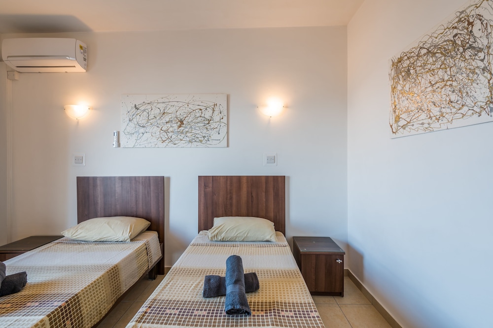Si te alojas en Seashells Apartments, en St. Paul's Bay (Bugibba), estarás a pocos pasos de Plaza de Bugibba y a unos minutos de Torre de Wignacourt. Este complejo de apartamentos de 4 estrellas se encuentra muy cerca de Playa Bugibba y Parque nacional Salina.Habitaciones Reserva una de las 12 habitaciones con cocina, frigorífico y placa de cocina, y disfruta de una estancia inolvidable. Las habitaciones disponen de balcón amueblado. La conexión a Internet wifi gratis te permite comunicarte con los tuyos, y en tus ratos libres tendrás un televisor LCD con canales por satélite para entretenerte. Las comodidades incluyen escritorio y microondas, además de un servicio de limpieza disponible de forma limitada. Aprovecha los prácticos servicios que se te ofrecen, como conexión a Internet wifi gratis, servicio de canguro (de pago) o asistencia turística y para la compra de entradas.Servicios de negocios y otros Tendrás depósito de equipaje y ascensor a tu disposición. Se ofrece servicio de transporte al aeropuerto (ida y vuelta) de pago (disponible las 24 horas).
