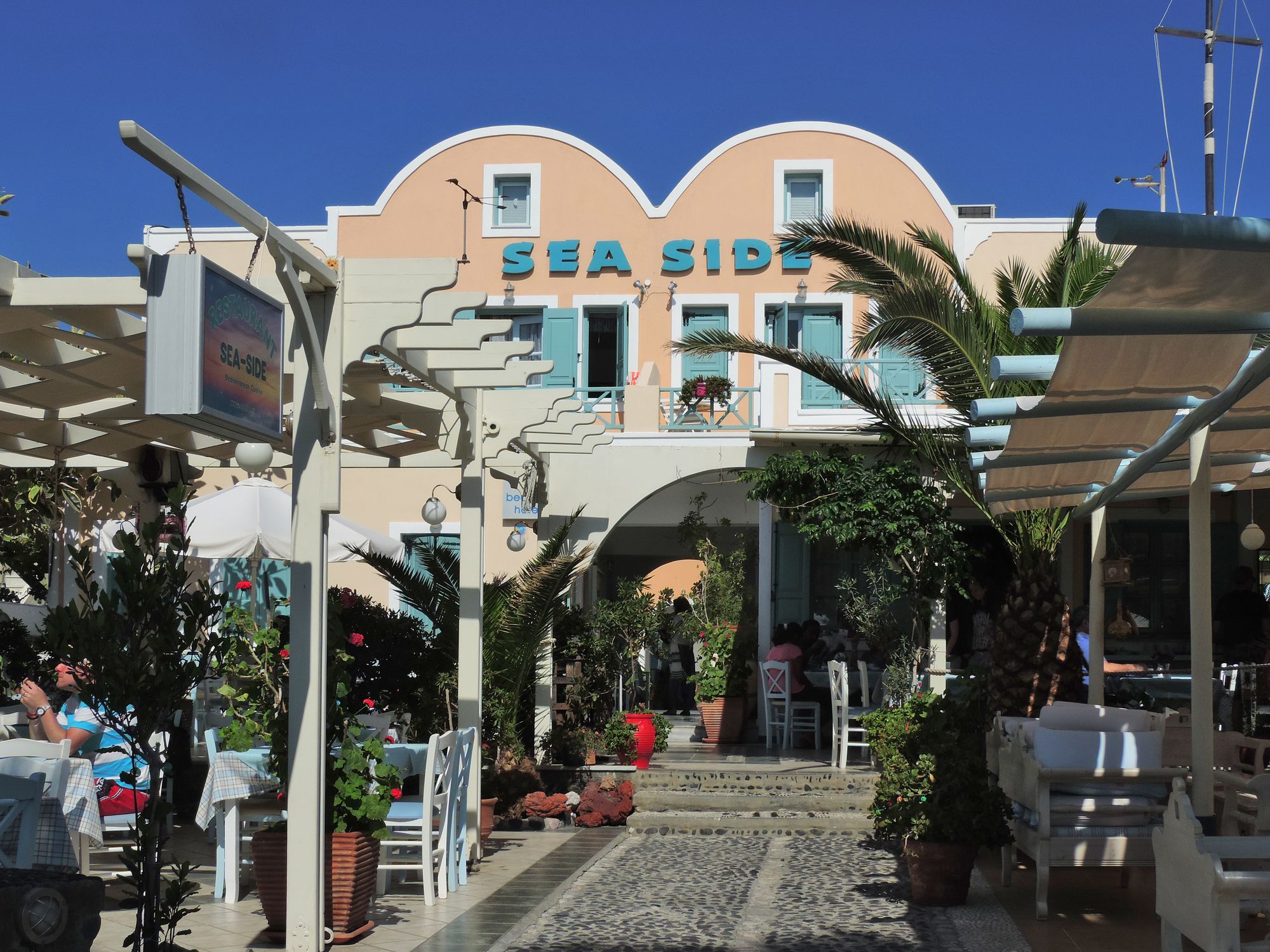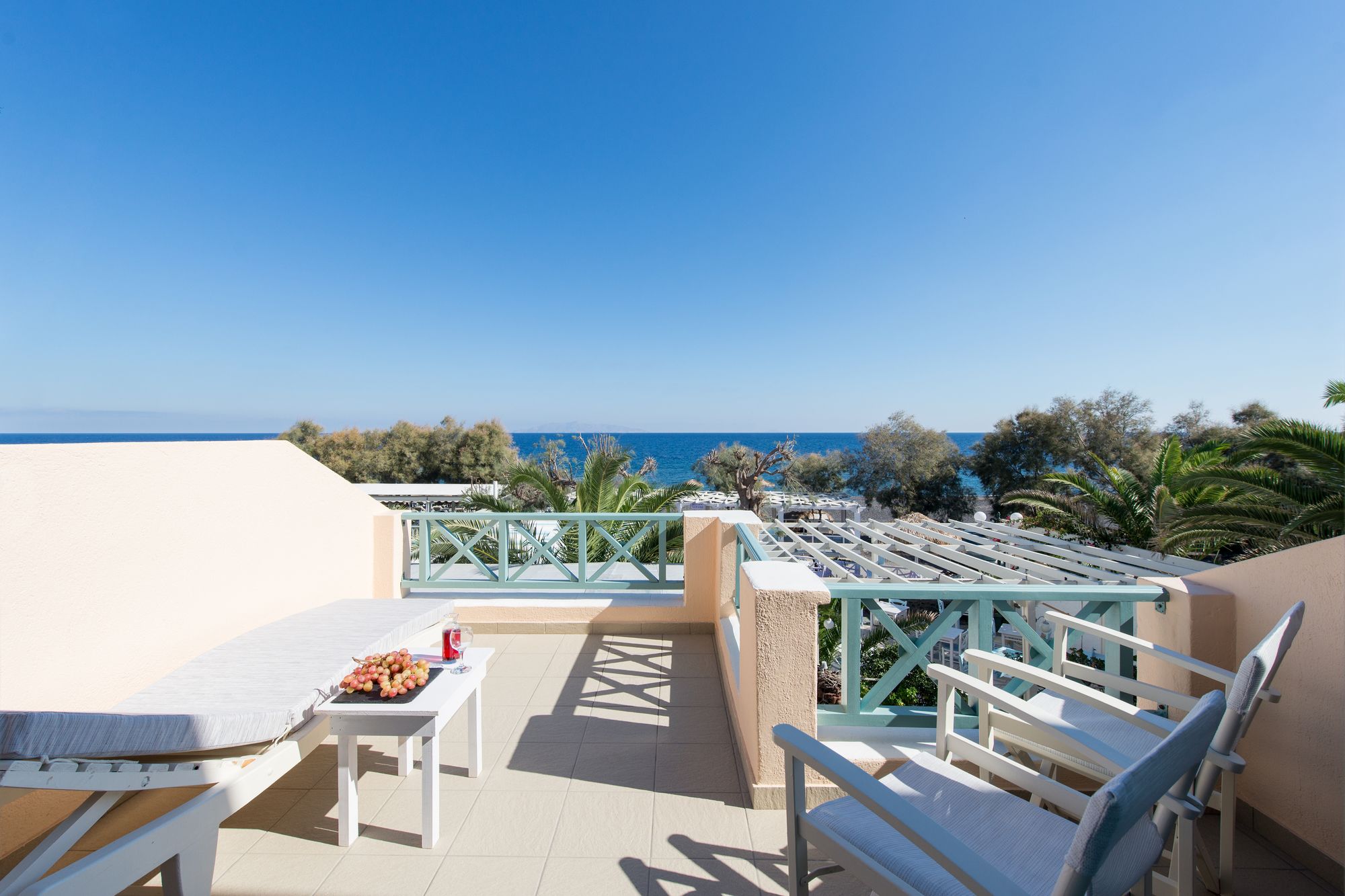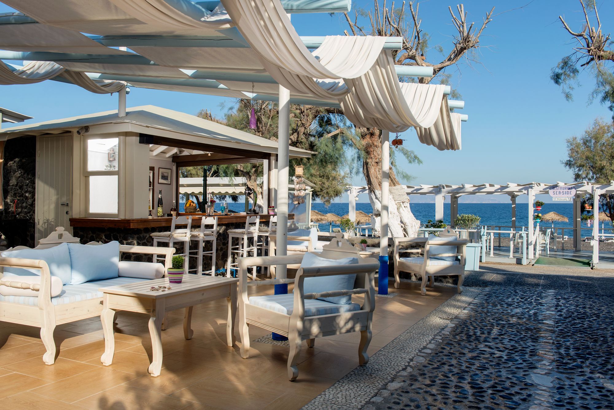 En Santorini (Kamari), Seaside Beach Hotel te permite llegar cómodamente a Playa de Kamari y Museo del vino. Este hotel de playa se encuentra cerca de Antigua Thera y de Monasterio del Profeta Elías.Habitaciones Te sentirás como en tu propia casa en una de las 27 habitaciones con decoraciones diferentes, dotadas de frigorífico y televisor LCD. Las camas cuentan con colchones Select Comfort para descansar plácidamente. Las habitaciones disponen de balcón amueblado. La conexión a Internet wifi gratis te permite comunicarte con los tuyos, y en tus ratos libres podrás entretenerte con el televisor LED de 22 pulgadas con canales por satélite. El baño privado está provisto de cabezal de ducha tipo lluvia y artículos de higiene personal de diseño. Aprovecha las instalaciones recreativas, que incluyen piscina al aire libre y bañera de hidromasaje. Se ofrece además conexión a Internet wifi gratis, servicio de celebración de bodas y asistencia turística y para la compra de entradas.Para comer Descubre las delicias que te esperan en el restaurante en primera línea de playa de este hotel, o aprovecha el servicio de habitaciones con horario limitado. Disfruta de tu bebida favorita en el bar o lounge o en el bar en la playa.Servicios de negocios y otros Tendrás check-in rápido, check-out rápido y servicio de tintorería a tu disposición. Pagando un pequeño suplemento podrás aprovechar prestaciones como servicio de transporte al aeropuerto (ida y vuelta) (a petición) y aparcamiento sin asistencia gratuito.