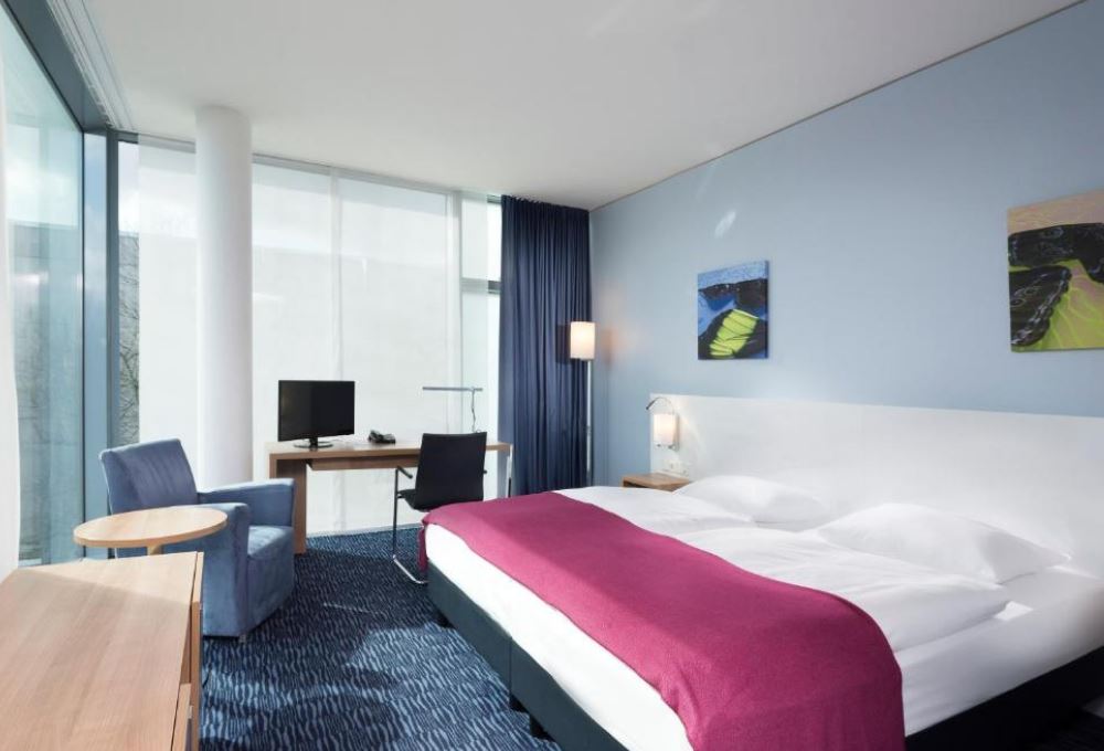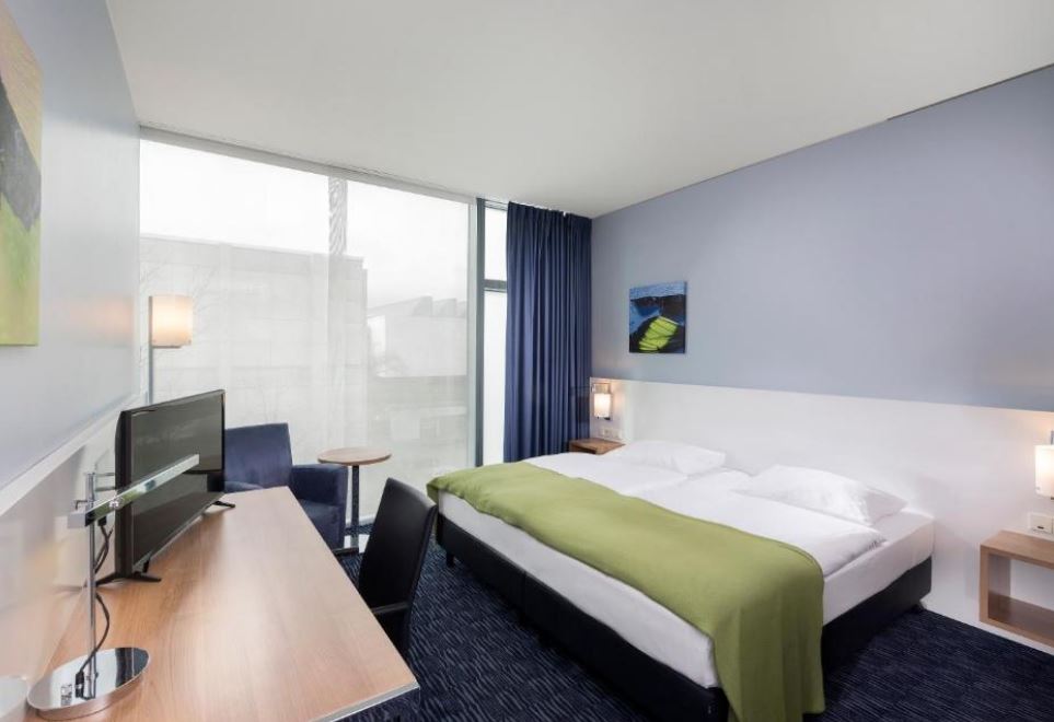 Las habitaciones del Seminaris CampusHotel Berlin disponen de aire acondicionado, zona de trabajo luminosa y caja fuerte.
