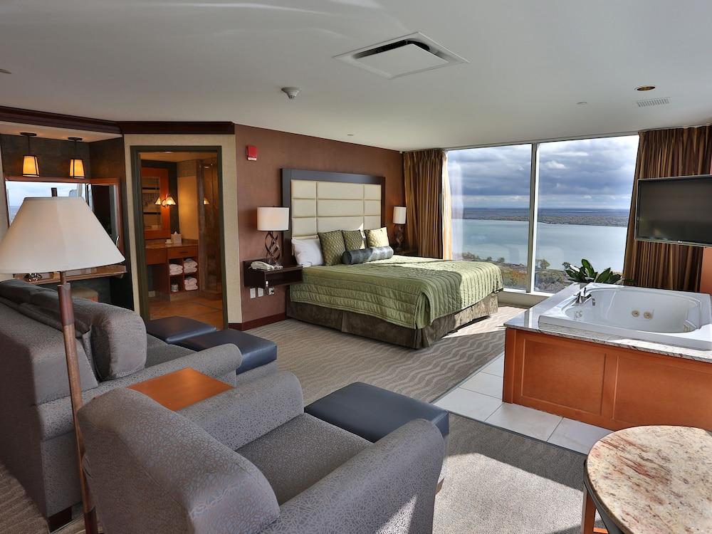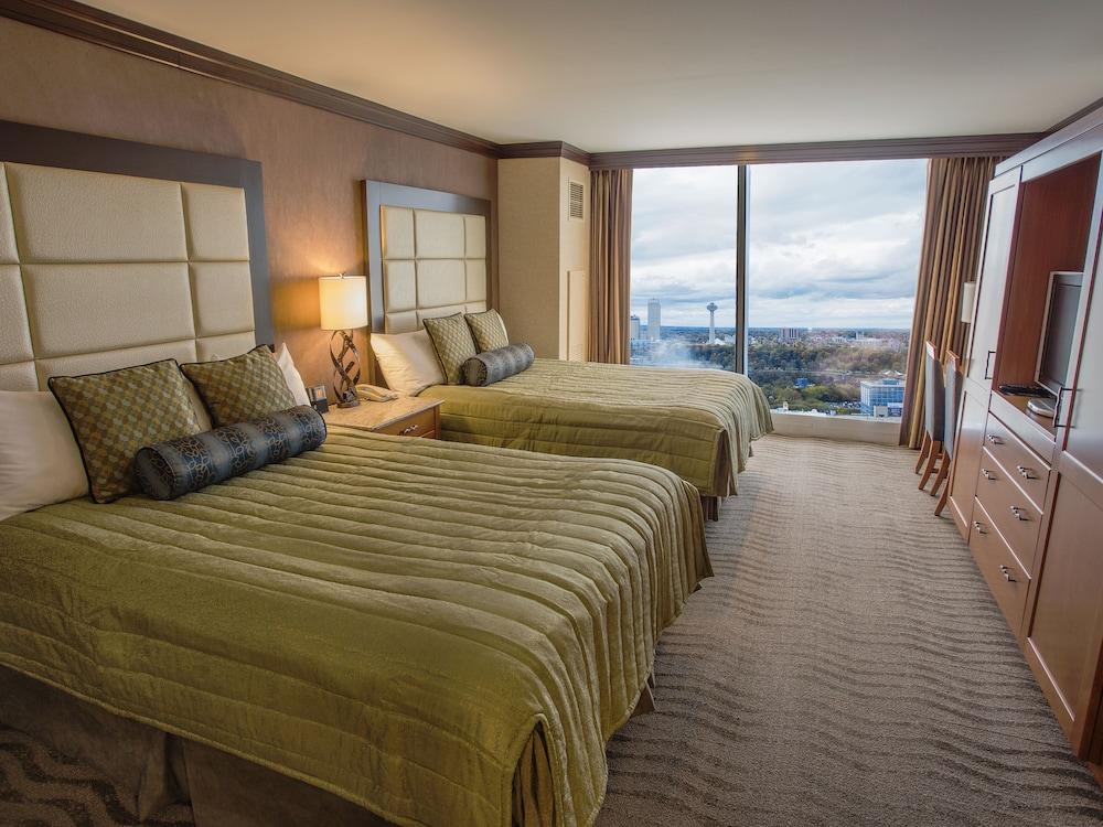 Te sentirás como en tu propia casa en cualquiera de las 604 habitaciones con aire acondicionado y frigorífico. Mantén el contacto con los tuyos gracias a la la conexión wifi gratis. El cuarto de baño está provisto de ducha y secadores de pelo. Entre las comodidades, se incluyen caja fuerte, escritorio y teléfono con y llamadas locales gratuitas.Si tienes ganas de comer algo de marisco, ve a Western Door, uno de los 10 restaurantes de este hotel, o simplemente llama al servicio de habitaciones las 24 horas. Qué mejor forma de acabar el día que con una bebida en el bar o lounge. Se ofrece un desayuno bufé todos los días de 05:30 a 10:30 con un coste adicional.Tendrás un centro de negocios, check-out exprés y periódicos gratuitos en el vestíbulo a tu disposición. Las instalaciones para eventos de este hotel incluyen centro de conferencias y 5 salas de reuniones. Hay un aparcamiento con asistencia gratuito disponible.Si decides alojarte en Seneca Niagara Resort and Casino, te encontrarás en una fantástica zona de Niagara Falls (Centro de la ciudad de las cataratas del Niágara) y estarás a solo 3 min a pie de Seneca Niagara Resort and Casino y a 6 de Parque estatal de Niagara Falls. Además, este hotel con casino se encuentra a 1 km de Excursión en barco Maid of the Mist y a 1,1 km de Aquarium of Niagara.Las distancias se expresan en números redondos. Seneca Niagara Resort and Casino: 0,3 km Distrito de entretenimiento Old Falls Street: 0,3 km Desfiladero del Río Niágara: 0,3 km Centro de conferencias de Niagara Falls: 0,4 km Parque estatal de Niagara Falls: 0,5 km Niagara River: 0,7 km Excursión en barco Maid of the Mist: 1 km Aquarium of Niagara: 1,1 km Torre de observación: 1,1 km Plataforma de observación de Prospect Point: 1,1 km Puente RainBow: 1,2 km Ayuntamiento de Niagara Falls: 1,2 km Centro de información Niagara Gorge Discovery Center: 1,2 km Niagara Falls Memorial Medical Center: 1,2 km Goat Island: 1,3 km Aeropuertos más cercanos: Cataratas del Niágara, NY (IAG-A. Internacional de Cataratas del Niágara): 12,3 km Buffalo, NY (BUF-A. Internacional de Buffalo Niagara): 42 km Aeropuerto recomendado para Seneca Niagara Resort and Casino: Buffalo, NY (BUF-A. Internacional de Buffalo Niagara).