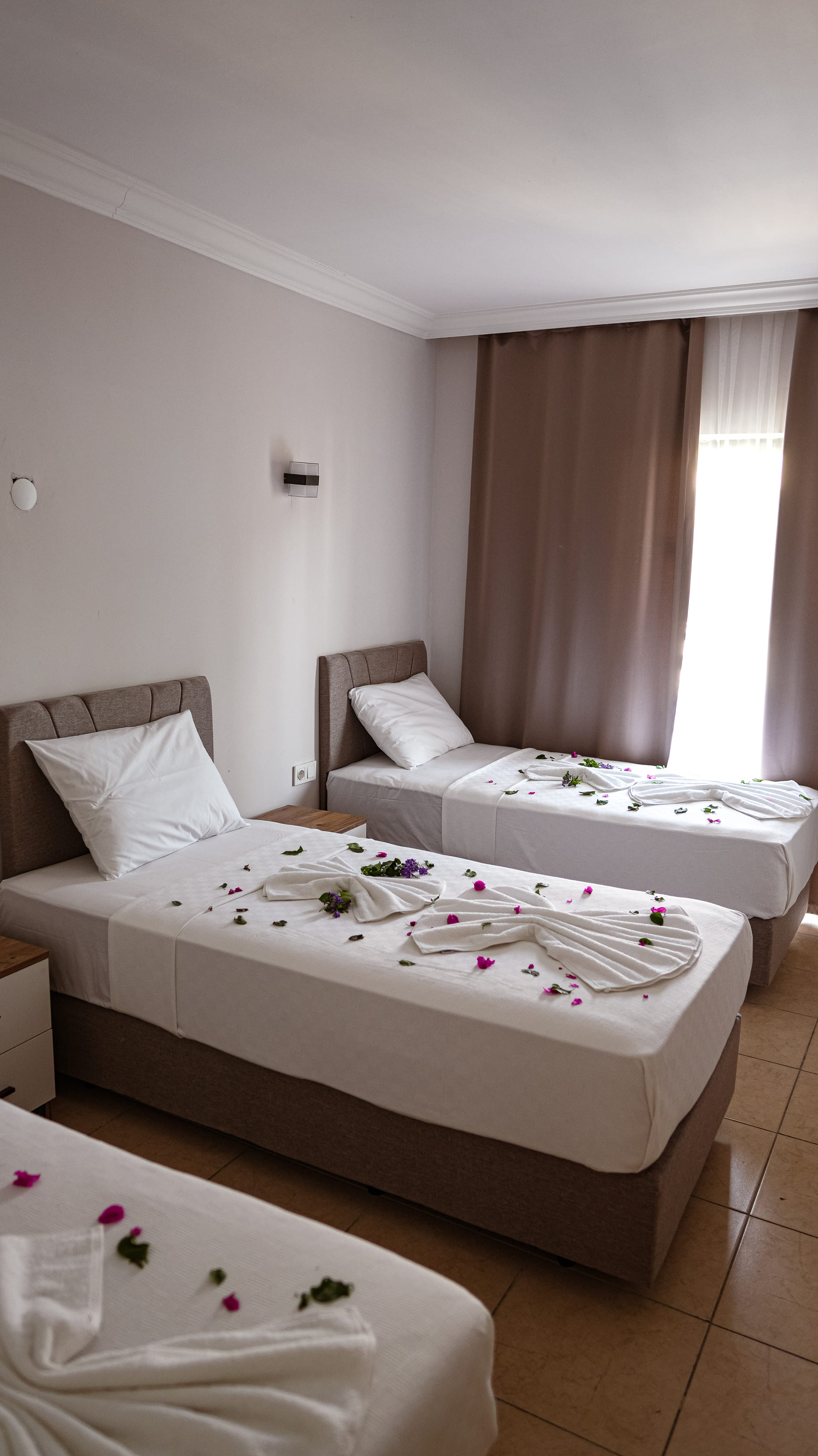 El alojamiento de 3 estrellas Seven Brothers Hotel está situado a unos 2 km de la playa. Los bares y restaurantes más próximos se encuentran a unos 500 m de distancia. El casco histórico está a unos 8 km. Las tiendas y comercios están aprox. a 450 m del hotel, a unos 150 m puede encontrarse un supermercado. La distancia hasta el aeropuerto es de unos 105 km. Como opciones de entretenimiento, hay en las inmediaciones una discoteca (a unos 1 km de distancia). El hotel halal de 3 estrellas con aire acondicionado y verificado por GPS cuenta con una recepción abierta las 24 horas del día (posibilidad de registrarse las 24 horas del día), un vestíbulo, conexión WiFi, conexión a Internet, un ascensor, un supermercado, una boutique, una peluquería, ducha y vestuarios, un botiquín así como una sala de televisión con SAT-TV. En la parte exterior , junto a un jardín, hay una piscina de temporada (abierto de abril hasta noviembre), en la cual puede disponerse de hamacas, sombrillas y toallas de baño gratuito. Además, para los veraneantes más pequeños, aquí encontrará una piscina infantil separada e integrada con 2 toboganes de pista abierta así como con 2 toboganes infantil. Para su seguridad, el área de la piscina está supervisada por un salvavidas. Además, al aire libre encontrará una terraza. Puede guardar sus objetos de valor en la caja fuerte y su equipaje en la consigna del hotel. Además, el hotel videovigilado las 24 horas. Pueden proporcionarse para los más pequeños sillas altas y sillas para niños. Además del botones del hotel se ocupa de su comodidad. En caso de necesidad puede dirigirse al servicio médico. El voltaje del hotel es de 220 voltios. Si desea explorar la región de sus vacaciones, puede utilizar el servicio de alquiler de motos próximo al hotel. En la recepción se venden entradas para excursiones por los alrededores. En su hotel de vacaciones se da mucho valor a la sostenibilidad. A este propósito responden, entre otros, la separación de residuos en las habitaciones, un contenedor de reciclaje propio del hotel, la provisión de expendedores de jabón y champú, comida ecológica, un sistema de ventilación centralizado de la habitación y un sistema de limpieza compatible con el medio ambiente. Se aceptan American Express, Euro/Master Card, JCB, Visa o tarjetas de débito como método de pago. Gracias a sus instalaciones sin barreras, el hotel también es adecuado para personas en silla de ruedas. Comidas Como servicios de restauración, el hotel ofrece: solo desayuno. Para el almuerzo se sirven platos de menú o a la carta con entrantes, ensaladas así como postres. Para la cena se sirven platos de menú o a la carta con entrantes y ensaladas. Del disfrute culinario se ocupan un restaurante con terraza (comidas también vegetarianas) y un bar así como un bar de la piscina. La carta de bebidas del hotel incluye agua, refrescos, café y té y vino. Distancias