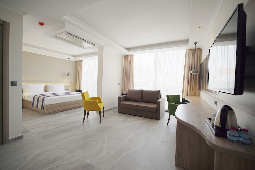 En Fethiye (Oludeniz), Seyir Village Hotel se sitúa a poca distancia de Parque Nacional de Oludeniz y Playa de Oludeniz. Este hotel se encuentra a pocos kilómetros de Tumbas de roca de Amyntas y de Castillo de Fethiye. Te sentirás como en tu propia casa en cualquiera de las 30 habitaciones con aire acondicionado, minibar y televisor de pantalla plana. Las habitaciones disponen de balcón o patio. La conexión a Internet wifi gratis te mantendrá en contacto con los tuyos; también podrás ver tu programa favorito en el televisor con canales por cable. El cuarto de baño está provisto de ducha. Con piscina al aire libre y muchas otras instalaciones recreativas a tu disposición, no te quedará ni un minuto libre. Tienes también una terraza y jardín donde sentarte a contemplar el paisaje. Si tienes hambre, pasa por el restaurante de este hotel, que ofrece desayunos, almuerzos y cenas o utiliza el servicio de habitaciones con horario limitado. Mientras te das un chapuzón puedes pedir tu bebida favorita en el bar de la piscina. Tendrás servicio de recepción 24 horas, depósito de equipaje y biblioteca a tu disposición. Hay un aparcamiento sin asistencia gratuito disponible.