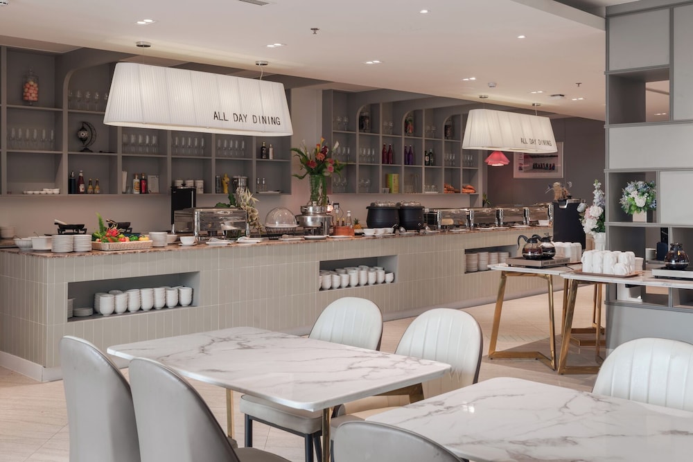 Instalaciones y serviciosLas instalaciones y servicios incluyen recepción 24 horas, wifi, bar, sala de desayunos, ascensores, jardín, gimnasio, plancha, servicio de lavandería, restaurante, piscina y aparcamiento.Servicios de la habitaciónLas habitaciones disponen de aire acondicionado, TV, teléfono, conexión Wi-Fi, cafetera/tetera, escritorio, caja fuerte, secador de pelo y baño privado.Notas importantes*Algunas instalaciones pueden estar cerradas debido a las condiciones meteorológicas o estacionales.*Ciertos servicios, instalaciones y comodidades están sujetos a disponibilidad. Algunas de ellas pueden suponer cargos adicionales, que están sujetos a cambios.Horarios de entrada y salidaHora de entrada: 14:00Hora de salida: 12:00Dirección: 3390 New Petchaburi Rd, Bang Kapi, Huai Khwang, Bangkok 10310, Tailandia.