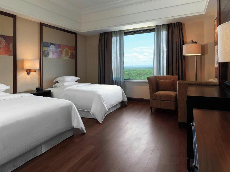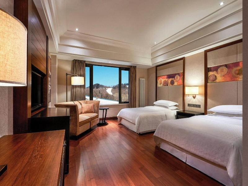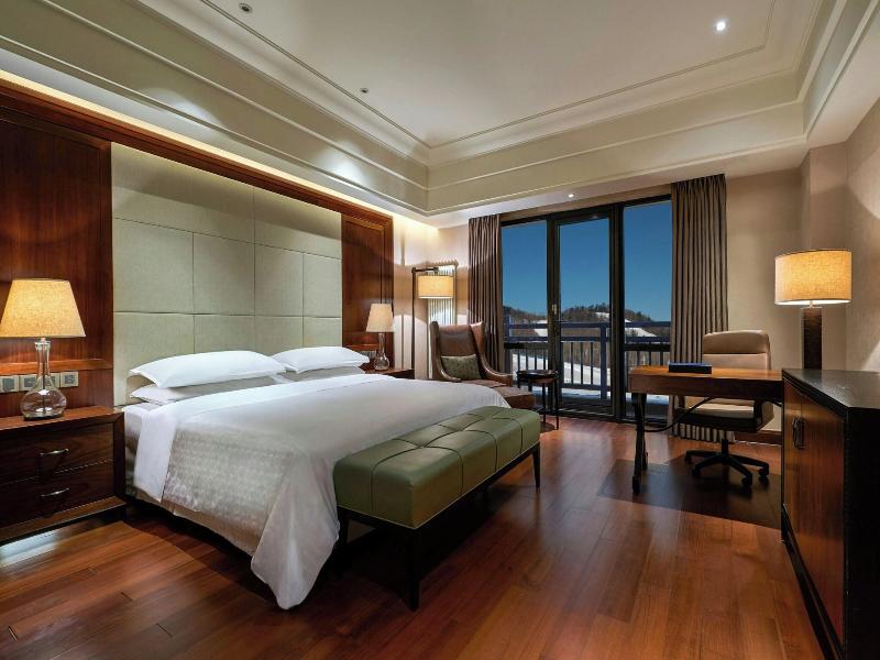 Ubicado cerca de los remontes en Baishan, el Sheraton Changbaishan Resort ofrece acceso directo a las pistas de esquí, lo que te sitúa a pocos pasos del lago Fokulon y del Changbaishan Ski Resort. Este lujoso hotel cuenta con 297 habitaciones con aire acondicionado, equipadas con refrigerador, soporte para iPod, camas con pillow-top y ropa de cama de primera calidad, y televisores LCD de 42 pulgadas. Se proporciona acceso a internet por cable e inalámbrico de forma gratuita. Puedes disfrutar de cocina internacional en uno de los dos restaurantes del hotel, incluyendo servicio a la habitación las 24 horas, o tomar un refrigerio en la cafetería. El hotel también cuenta con piscina cubierta, sauna, servicios de conserjería, guardaesquís, transporte gratuito a las pistas de esquí y dos bares. Se sirve un desayuno gratuito con especialidades locales todos los días. Para viajeros de negocios, el hotel ofrece un centro de negocios, salas de reuniones y 2400 metros cuadrados de espacio para conferencias. Un servicio de transporte gratuito al aeropuerto está disponible las 24 horas del día.