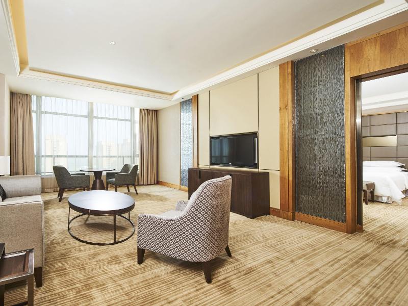 Si decides alojarte en Sheraton Chuzhou Hotel, disfrutarás de una fantástica ubicación en el centro de Chuzhou, a menos de diez minutos en coche de Kang Qiang Happy World y Erlang Lake. Además, este hotel elegante se encuentra a 7, 8 km de Templo antiguo de Langya y a 9, 2 km de Parque Forestal Nacional Langyashan. . Para tus ratos libres, tienes instalaciones recreativas como una piscina cubierta, una sauna y un gimnasio a tu disposición. Otros servicios de este hotel incluyen conexión a Internet wifi gratis, servicios de conserjería y servicio de celebración de bodas. . Te sentirás como en tu propia casa en cualquiera de las 348 habitaciones con frigorífico y televisión LCD. Mantén el contacto con los tuyos gracias a la la conexión wifi gratis. El baño privado con bañera y ducha independientes está provisto de cabezal de ducha tipo lluvia y artículos de higiene personal gratuitos. Entre las comodidades, se incluyen caja fuerte, escritorio y teléfono. . Degusta algo de cocina china en 采悦轩中餐厅, uno de los 2 restaurantes de este hotel. El alojamiento también te ofrece servicio de habitaciones con horario limitado y una cafetería. Apaga la sed con tu bebida favorita en el bar o lounge. El desayuno bufé, con un coste adicional, se ofrece de lunes a viernes de 06:30 a 10:00, mientras que los fines de semana el horario es de 06:30 a 10:30. . Tendrás un centro de negocios, check-in exprés y check-out exprés a tu disposición. ¿Estás organizando un evento en Chuzhou? En este hotel tienes a tu disposición 3400 metros cuadrados de espacio con centro de conferencias y 9 salas de reuniones. Hay un aparcamiento sin asistencia gratuito disponible. . Las distancias se expresan en números redondos.