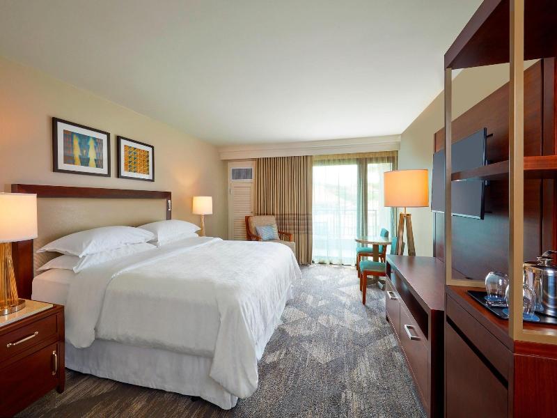 Disfruta del sol de Kauai en el Sheraton Kauai Resort, que cuenta con dos atractivas piscinas al aire libre y un gimnasio abierto las 24 horas. Deléitate con la cocina internacional en RumFire Poipu Beach, uno de los dos restaurantes del complejo, o disfruta de un refrigerio informal en la cafetería. Relájate con una bebida refrescante en el bar junto a la piscina o en uno de los dos salones del complejo. El complejo también ofrece servicios de conserjería, tiendas de regalos y servicios para bodas. Cada una de las 188 habitaciones con aire acondicionado ofrece comodidades modernas, como un televisor LED con canales por cable, wifi (de pago), caja fuerte y cafetera/tetera. Los baños incluyen combinaciones de ducha/bañera y secador de pelo. Convenientemente ubicado cerca de Kiahuna Beach, Poipu Shopping Village y varias otras atracciones. El aeropuerto recomendado es el Aeropuerto de Lihue (LIH).
