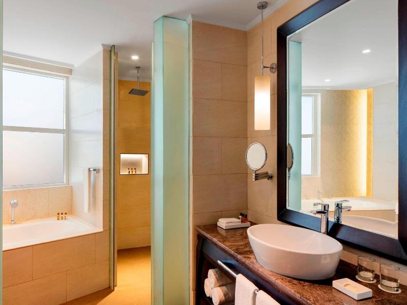 Situado en la zona de Playa y Costa de Sharjah, el Sheraton Sharjah Beach Resort & Spa se encuentra a poca distancia en coche del Safeer Mall y del Ajman Ladies Park. Este hotel de lujo ofrece un spa con todos los servicios, que incluye masajes y tratamientos faciales, una playa privada, una piscina al aire libre y una bañera de hidromasaje. Los huéspedes pueden disfrutar de wifi gratuito, servicios de conserjería, una sala de juegos recreativos y un servicio de transporte gratuito a las tiendas. Las 349 habitaciones con aire acondicionado disponen de estaciones de conexión para iPod, minibar, televisores LED de 40 pulgadas con canales premium y baños privados con bañera y ducha separadas. Cuatro restaurantes, incluido el Gusti All Day Dining, que sirve cocina mediterránea, servicio de habitaciones las 24 horas, dos cafeterías y un bar junto a la piscina ofrecen diversas opciones gastronómicas. El desayuno bufé está disponible todos los días (de pago). También cuenta con centro de negocios y registro de entrada/salida exprés.