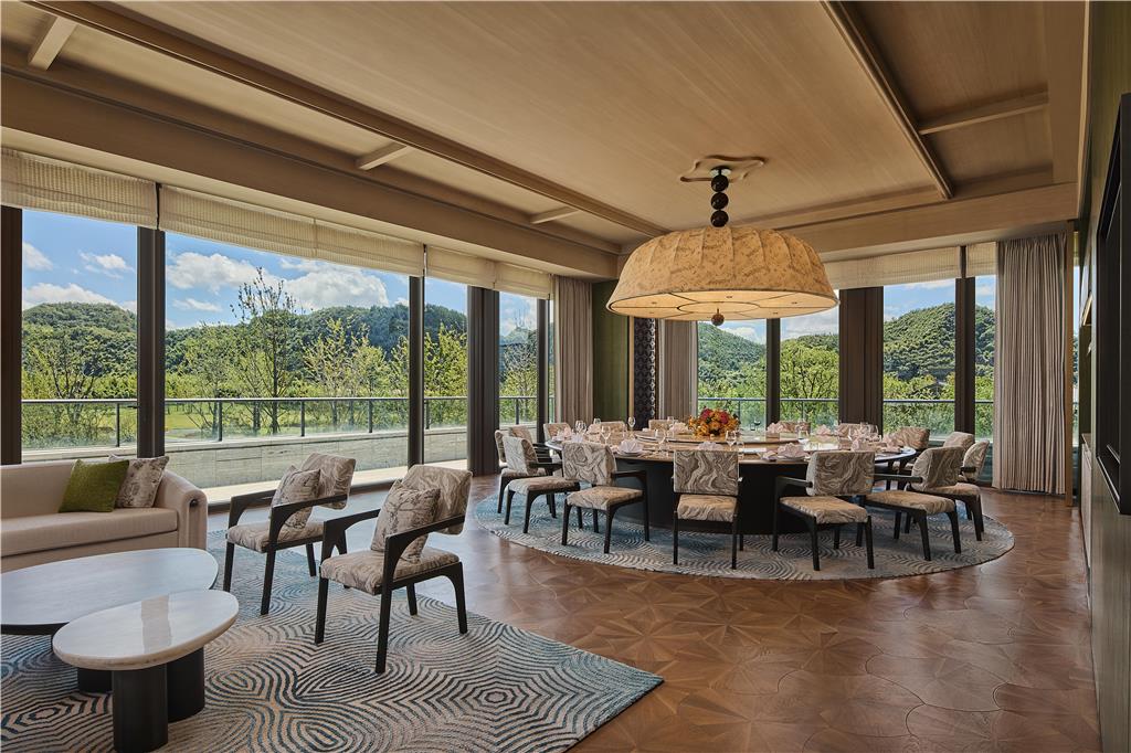 Shuhua Hotel Tianmushan Mountain, Curio Collection by Hilton is located at the foot of Tianmu Mountain in Lin'an District, Hangzhou. The hotel features 292 guest rooms and suites, each equipped with a private balcony or floor-to-ceiling windows offering panoramic views. Some special room types also come with private courtyards or private hot spring pools. All rooms are furnished with modern amenities such as smart temperature control systems, standalone bathtubs, high-speed Wi-Fi, and smart toilets, providing guests with a convenient and high-quality living experience. As a pet-friendly hotel, it also offers thoughtful facilities for guests traveling with their pets. The hotel has three distinctive dining spaces and over 7,000 square meters of meeting and event venues, including a 4,500-square-meter ballroom equipped with a 208-square-meter high-definition LED screen, an 800-square-meter executive hall, and 12 multi-functional meeting rooms that can be combined. It also features a 1,350-square-meter outdoor lawn, making it an ideal venue for lawn weddings, starry night banquets, and brand launch events.,