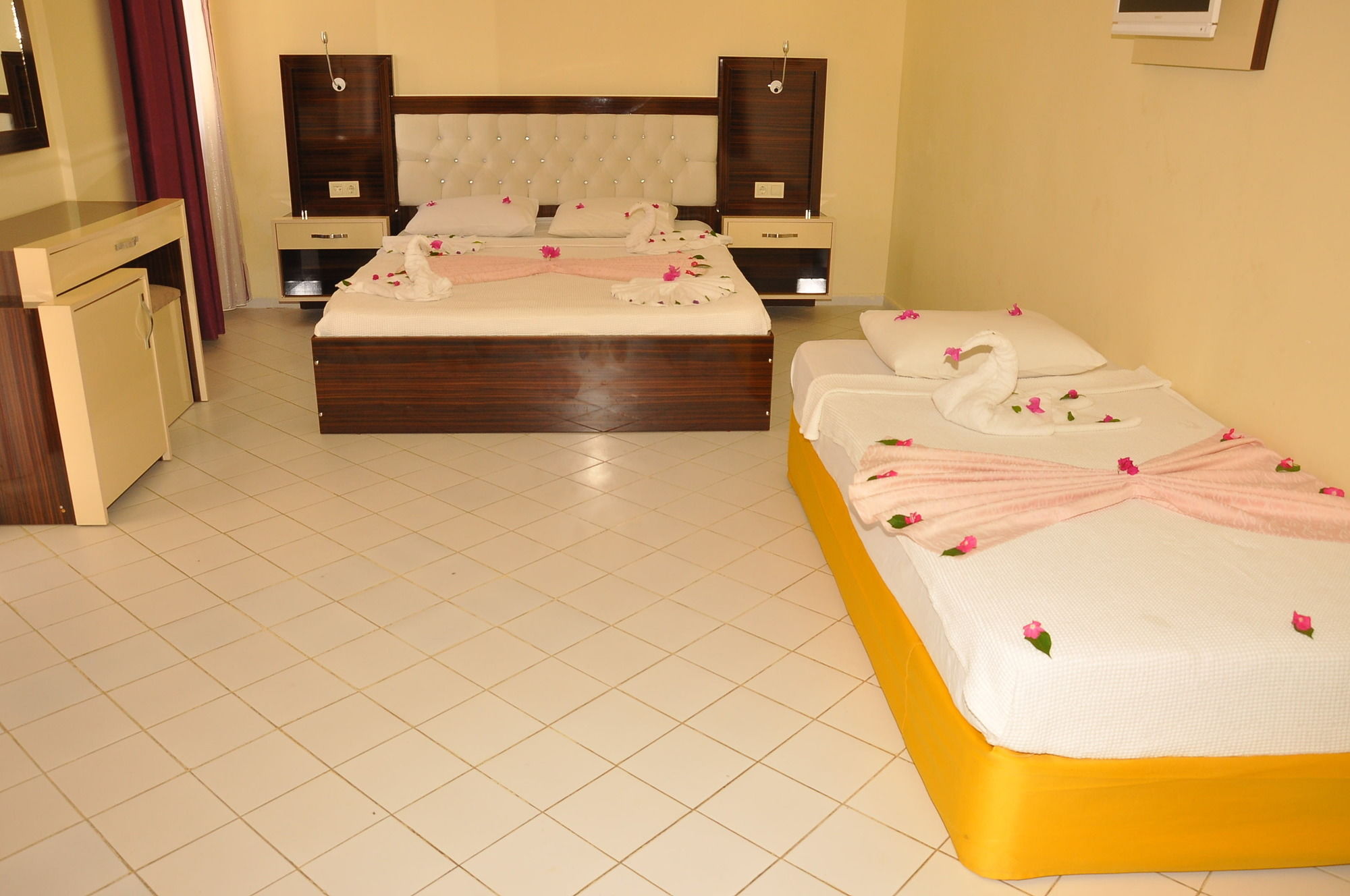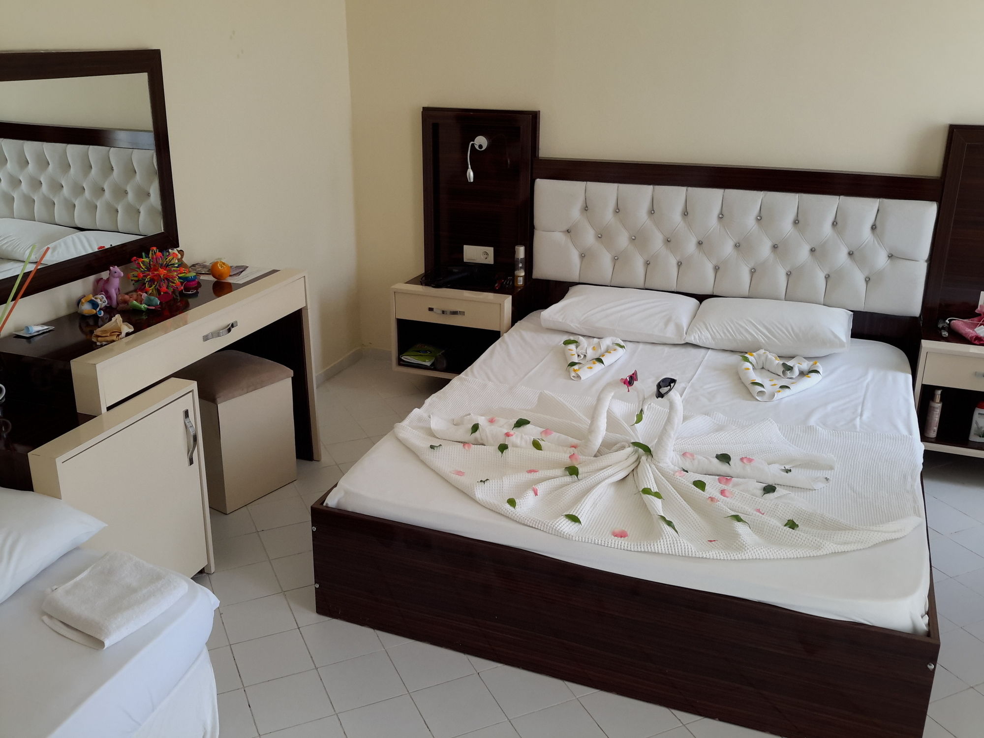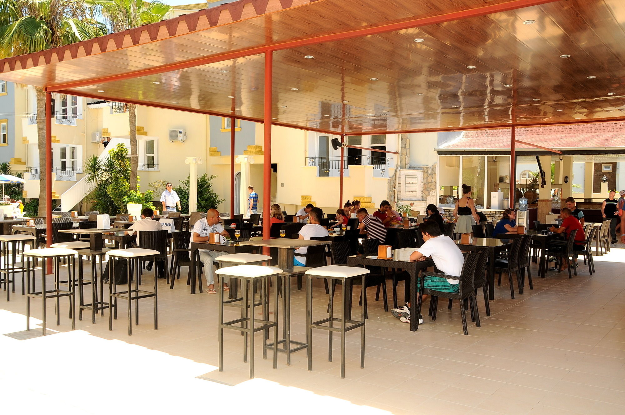 Side Midnight Sun Hotel - All Inclusive te permite disfrutar de una ubicación estupenda en Side, cerca de la playa y a poca distancia de Agora y Teatro de Side. Este complejo turístico todo incluido se encuentra cerca de Museo de Side y de Puerto Side Harbor.Habitaciones Te sentirás como en tu propia casa en una de las 103 habitaciones con aire acondicionado, frigorífico y televisor LCD. Las habitaciones disponen de balcón. En tus ratos libres tendrás un televisor con canales por satélite para entretenerte. El baño privado con ducha está provisto de artículos de higiene personal gratuitos y secador de pelo. Elige entre las numerosas instalaciones recreativas ofrecidas, que incluyen discoteca y piscina al aire libre. Con el servicio de transporte a la playa gratuito, estarás tomando el sol en un abrir y cerrar de ojos.Para comer El régimen de este complejo turístico es de todo incluido. El precio incluye las comidas y bebidas consumidas en sus bares y restaurantes. Se podrá aplicar un suplemento por comer en algunos restaurantes, o por determinados menús o platos, bebidas u otros servicios. Tienes un restaurante a tu disposición para comer algo en Side Midnight Sun Hotel - All Inclusive. Apaga la sed con tu bebida favorita en el bar o lounge. Servicios de negocios y otros Tendrás servicio de recepción 24 horas, lavandería y café en el vestíbulo a tu disposición. Se ofrece servicio de transporte al aeropuerto (ida y vuelta) de pago (disponible las 24 horas).