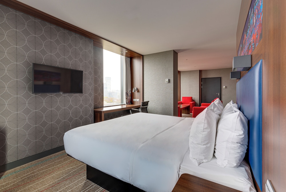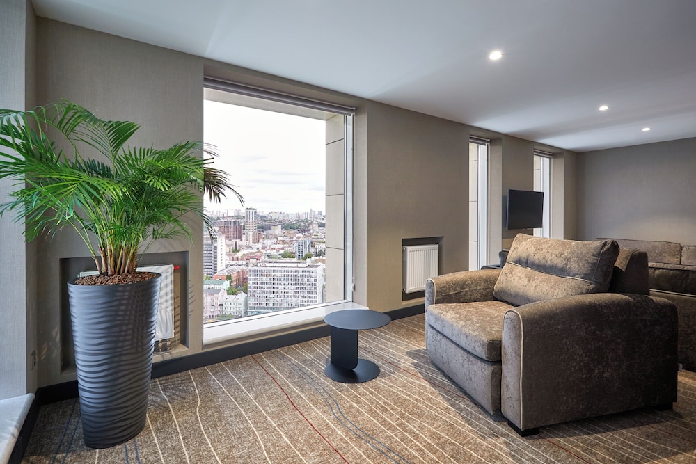 Si te alojas en Sky Loft Hotel Kyiv By Rixwell , en Kiev (Distrito de Pechersk), estarás a pocos minutos de Palacio de deportes y Sinagoga Brodsky. Este hotel de 4 estrellas se encuentra muy cerca de Museo Sholem Aleijem y PinchukArtCentre. Te sentirás como en tu propia casa en cualquiera de las 310 habitaciones con aire acondicionado, frigorífico y televisor LED. Podrás mantenerte en contacto con los tuyos gracias a la conexión a Internet wifi gratis, y escuchar tu música favorita, ya que dispondrás de estación de conexión para MP3. El baño privado con ducha y bañera combinadas está provisto de secador de pelo y albornoces. Entre las comodidades, se incluyen caja fuerte (cabe un portátil), botella de agua gratuita y teléfono. Con gimnasio y conexión a Internet wifi gratis, entre muchas otras prestaciones, aquí tendrás todo lo que necesitas. Prueba deliciosos platos sin moverte de este hotel, que cuenta con un restaurante y ofrece servicio de habitaciones con horario limitado. Apaga la sed con tu bebida favorita en el bar o lounge. Tendrás una zona de ordenadores, check-in rápido y check-out rápido a tu disposición. ¿Estás organizando un evento en Kiev? En este hotel tienes a tu disposición 300 metros cuadrados de espacio con zona para conferencias y salas de reuniones.