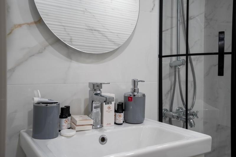En medio de una calle animada, el aislamiento acústico garantiza su tranquilidad. Duchas amplias, espacio para maletas, set de té completo, perchas cuidadosamente elegidas. . . cada detalle está pensado para su comodidad.