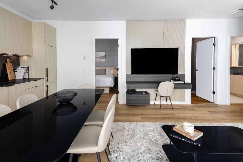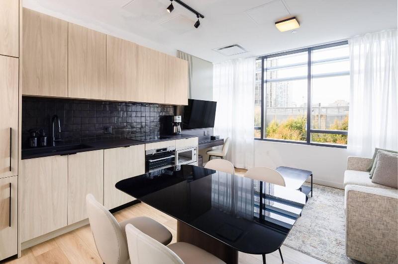Ubicado en el céntrico barrio de Yaletown, Smithe House ofrece modernos apartamentos con servicios para una estancia independiente en Vancouver. Este apartahotel de 4 estrellas proporciona una experiencia sin contacto con registro digital y asistencia. El establecimiento cuenta con gimnasio y aparcamiento en las instalaciones por un suplemento. Los alojamientos van desde estudios hasta apartamentos de una y dos habitaciones, incluyendo opciones para familias. Todos los apartamentos están equipados con aire acondicionado, wifi gratuito, lavadora y secadora, y una cocina completa que incluye lavavajillas, microondas y cafetera. Algunas unidades también disponen de balcón privado. La céntrica ubicación te permite llegar a pie a varias atracciones clave. El BC Place Stadium está a 3 minutos a pie, mientras que el Rogers Arena y la estación Yaletown-Roundhouse están a 7 minutos a pie. Puedes llegar al paseo marítimo de Vancouver en 13 minutos a pie.