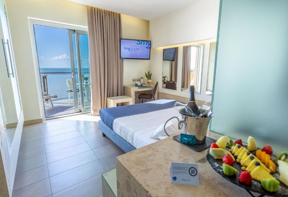 Las habitaciones del Smy Aran Blu Roma Mare disponen de aire acondicionado, minibar y TV de pantalla plana con canales vía satélite y Sky. El baño privado incluye secador de pelo y artículos de aseo gratuitos. Algunas habitaciones tienen balcón con vistas al mar.
