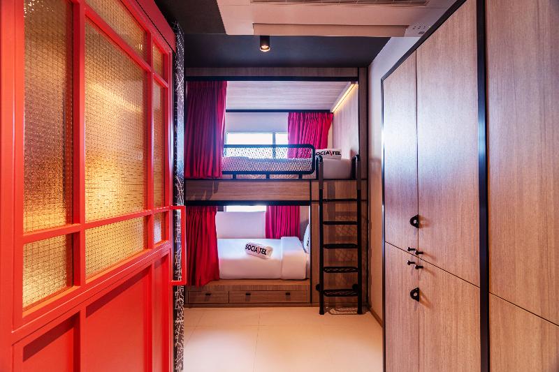 IVE SOCIAL. BE SOCIAL. Bienvenido a Socialtel Samui, el mejor híbrido de hotel-hostal de estilo de vida diseñado para nómadas modernos y viajeros de nueva generación. Aquí, redefinimos el viaje con ambientes vibrantes y acogedores llenos de energía y calidez. Nuestra propiedad no es solo un lugar para quedarse, es un centro social donde se comparten historias y se forjan amistades. A través de un diseño contemporáneo y espacios comunes, creamos un verdadero hogar lejos del hogar. Elige entre habitaciones privadas, dormitorios de 4 camas u 8 camas para encontrar tu paraíso personal y recargar energías después de un día o una noche de fiesta en nuestro paraíso tropical. ¿Viajas con tu pareja o tu mejor amigo/a? Nuestras habitaciones privadas son perfectas para ti. ¿Quieres subir de nivel tu estancia? Opta por nuestras suites con balcón con impresionantes vistas de nuestras legendarias fiestas en la piscina.