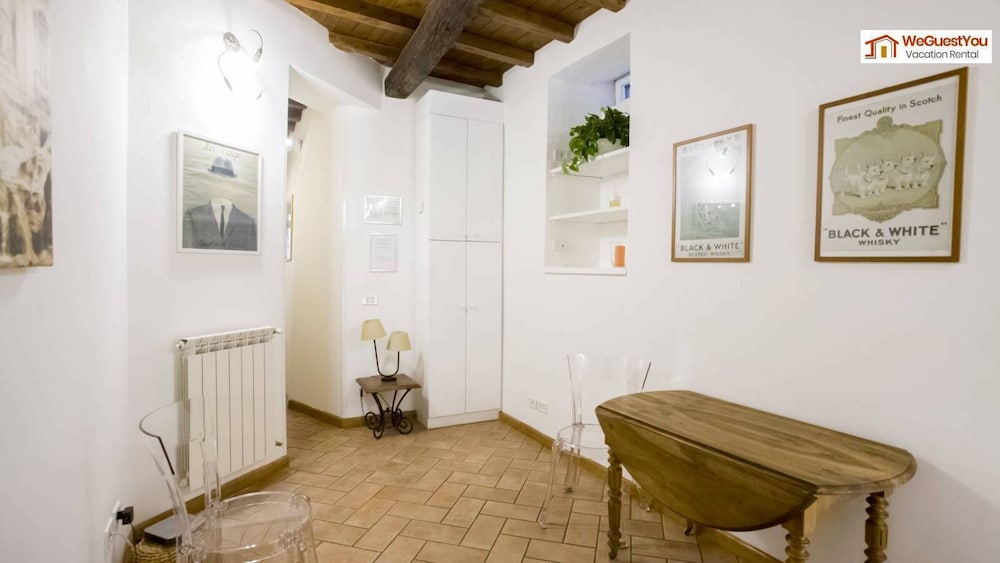 Facilities and services include air conditioning, cable/satellite television, a kitchenette, microwave, oven, coffee/tea maker, and a private bathroom with a hairdryer and towels provided. Address: Via di Monte Fiore, Trastevere, 00153 Rome, Italy