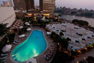 Este hotel esta situado a orillas del rio Nilo, en la ciudad de El Cairo. A unos minutos podra encontrar una gran cantidad de tiendas, comercios y lugares de ocio y entretenimiento.Este hotel de lujo tiene 24 plantas en las que se reparten un total de 617 habitaciones, 52 de ellas suites. El edificio esta climatizado y tiene un hall de entrada acogedor, ascensores y un area de recepcion abierta las 24 horas del dia. Dispone de una preciosa galeria comercial, un casino y un centro de negocios con varias y modernas salas de conferencias y de reuniones. En el agradable restaurante se le serviran ricas especialidades nacionales e internacionales. Como prestaciones adicionales, se le ofrecen los servicios de habitaciones, de lavanderia y un aparcamiento.Las acogedoras habitaciones estan dotadas de un cuarto de bano con banera y ducha separada. Ademas, estan equipadas con telefono de linea directa, television via satelite o por cable, conexion a Internet, caja fuerte de alquiler y minibar. El sistema de aire acondicionado esta regulado por el hotel. Las suites son algo mas espaciosas y disponen de una zona con tresillo. En todas hay un balcon o terraza.Desde la piscina climatizada del hotel tiene unas preciosas vistas del Nilo.Se ofrece todas las mananas desayuno en forma de bufet, para que asi pueda servirse lo que quiera. Tanto a la hora de la cena como del almuerzo puede elegir a la carta o pedir un menu.