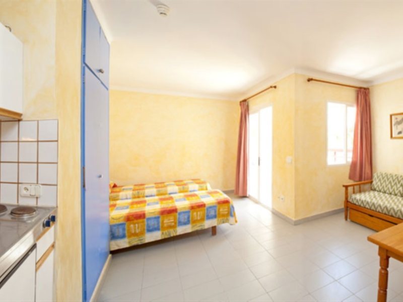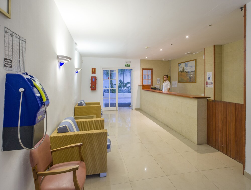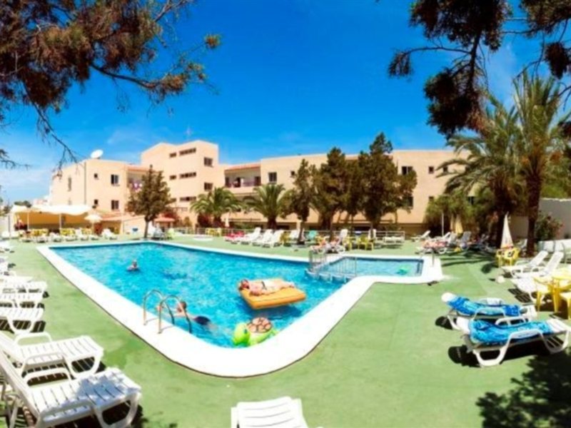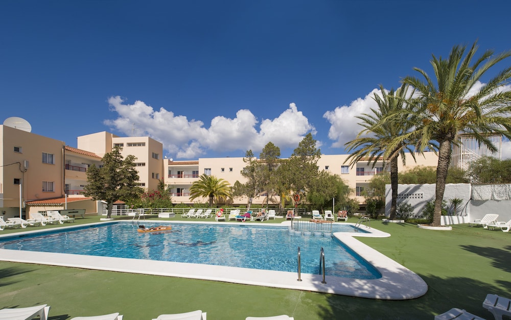 Las instalaciones y servicios incluyen recepción abierta 24 hrs, una cafetería, un snack bar, caja de seguridad en la recepción, ascensor, una piscina exterior, solárium, mesa de billar (cargo extra), una cancha de tenis, servicio de cambio de divisas, servicio de corte de pelo (cargo extra) y servicios de alquiler de coches/bicicletas.Los apartamentos cuentan con TV, teléfono, aire acondicionado/calefacción, caja de seguridad, cocina Americana, nevera, plancha y balcón/terraza.Dirección: Calle Es Caló No. 87, 07815, San Antonio, Ibiza, España.