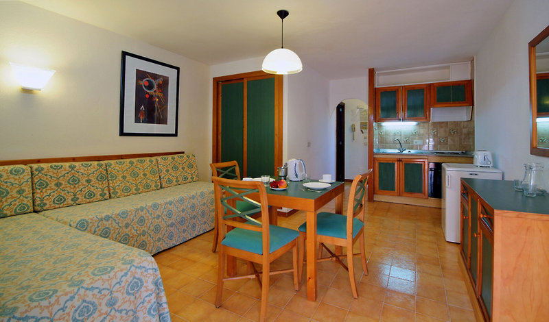 Ubicación - Este complejo de apartamentos está situado en una zona apacible y tranquila, en la parte oeste de la isla de Mallorca. A unos 250 metros podrá encontrar la playa Cala Gran. A una distancia aproximada de 400 metros hay un centro comercial. El animado centro de la capital de Mallorca está a una hora en coche. El tiempo de traslado hasta el aeropuerto de Palma, situado a 70 kilómetros, es de unos 70 minutos.. Instalaciones - Los huéspedes podrán relajarse en uno de los 90 apartamentos. Hay un vestíbulo y servicios de recepción a disposición de los viajeros. La conexión Wi-Fi en las zonas públicas permite a los huéspedes mantenerse en contacto con el mundo exterior. Hay diferentes instalaciones gastronómicas entre las que escoger, como un restaurante, una cafetería y un bar. Para productos de necesidad diaria hay un supermercado a disposición de los huéspedes. Los niños lo pasarán en grande en el parque infantil. Las instalaciones del apartotel incluyen una sala de TV. También se incluyen un servicio de canguro, una guardería y una lavandería. Los huéspedes más activos, con ganas de descubrir los alrededores en bicicleta, sabrán apreciar el servicio de alquiler de bicicletas. Para la comunicación o los asuntos relacionados con los negocios es posible hacer uso de un fax.. Habitaciones - En las habitaciones hay aire acondicionado, calefacción central, una cocina y un cuarto de baño. El equipamiento básico de la mayoría de las habitaciones incluye un balcón. Hay disponibles dormitorios separados. Hay cunas para los más pequeños. Además, hay una caja fuerte. El rincón de cocina está bien equipado con una nevera, una mini nevera, un horno y una cafetera/tetera para quien desee prepararse su propia comida. También hay una lavadora y un set de plancha. Pequeños extras se encargan de proporcionar una estancia agradable, como conexión a Internet, teléfono, televisor y Wi-Fi (gratis). Los cuartos de baño cuentan con una ducha y una bañera. Además, hay un secador de pelo. Hay habitaciones familiares especiales para familias con niños.. Deporte y ocio - El alojamiento ofrece una piscina al aire libre y una piscina infantil. Las tumbonas y sombrillas en la terraza invitan a relajarse. La bañera de hidromasaje en la zona de baño promete una relajación total. También hay un bar de piscina. Para aquellos que tengan ganas de moverse, se ofrece bicicleta/bicicleta de montaña, tenis y golf. Los aficionados a los deportes acuáticos pueden practicar catamarán y submarinismo. Los huéspedes del hotel pueden disfrutar de ping-pong en el recinto interior. Hay una zona de bienestar con un spa a disposición de los huéspedes. Por un suplemento, también se ofrece masajes. Hay un club infantil para proporcionar diversión y entretenimiento. Comidas - El apartotel ofrece, como servicio gastronómico, la posibilidad de reservar media pensión y todo incluido. Se prepara desayuno, almuerzo y cena. Además, el alojamiento cuenta con aperitivos. Una atracción especial es la cocina en vivo. Se ofrecen bebidas sin alcohol y bebidas alcohólicas.. Tarjetas de crédito - En el hotel se aceptan las siguientes tarjetas de crédito: Visa y MasterCard..