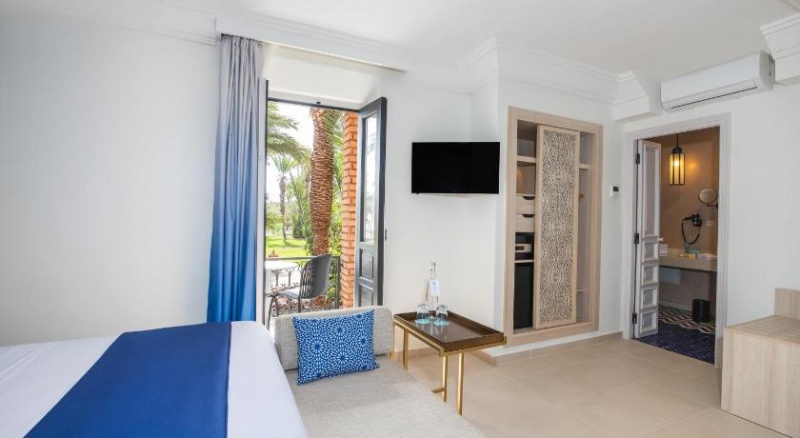 Debido a la crisis sanitaria del Covid-19, la operativa de nuestros hoteles se ha adaptado para garantizar la seguridad de nuestros clientes y cumplir con la normativa establecida. Se han implantado medidas adicionales de limpieza e higiene, ajustado procesos operativos y espacios y, en consecuencia, algunos servicios pueden verse afectados. Para informacion mas especifica de este hotel, por favor consulta la seccion Stay SafeSituado en el corazon de una plantacion de palmeras y a 10 km de Marrakech, es el alojamiento perfecto para visitar la ciudad y sus alrededoresCon una ubicacion que ofrece unas vistas esplendidas de la magica cordillera del Atlas y ubicado a 16 km del aeropuerto de Marrakech ? MenaraElige el regimen de Todo Incluido y disfruta de una exquisita oferta gastronomica con platos internacionales con pinceladas de la cocina marroquiSi lo que buscas es tranquilidad, el Cafe Maure es el lugar, con un exclusivo ambiente marroqui donde podras disfrutar de los mejores tes y de la exquisita reposteria marroquiSumergete en su piscina, entrena en el gimnasio, juega a tu deporte favorito o simplemente lee un libro bajo el sol, son algunas de las opciones que podras tener en el hotel Disfruta de la vibrante vida nocturna de Marrakech y no te pierdas las mejores puestas de sol, bajo un clima privilegiadoGracias a su ubicacion podras descubrir la belleza y riqueza cultural marroqui, como visitar la imponente cordillera del Atlas o pasear los animados zocos de la ciudad.Con un diseno local de arquitectura morisca, con preciosas zonas ajardinadas con patios y fuentes y una gran gama de actividades disponibles para toda la familia son la combinacion ideal para disfrutar de una emocionante aventura. Podras degustar platos tipicos de la gastronomia marroqui o internacional.