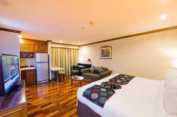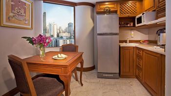Ubicación - Este hotel le ofrece comodidad y confort. Esta situado a solo unos minutos de los prósperos distritos de entretenimiento, negocios y comercio que rodean Sukhumvit Road, muy cerca de la estación de tren elevado BTS de Nana. Continuar sus viajes tampoco será un problema gracias a las buenas conexiones que esta ubicación de primera tiene con las principales autopistas y distritos de negocios. El aeropuerto de Suvarnabhumi de Bangkok dista unos 35 km, mientras que el aeropuerto internacional de Don Mueang queda a unos 25 km del hotel.. Instalaciones - El hotel fue edificado en el año 2002. Los huéspedes se sentirán como en su casa en una de las 130 habitaciones. En el alojamiento los huéspedes son recibidos en el vestíbulo con servicio de recepción las 24 horas y servicio de registro y salida las 24 horas. Las distintas plantas del establecimiento son accesibles en ascensor. Las instalaciones incluyen un guardarropa y una caja fuerte. La conexión Wi-Fi en las zonas públicas permite a los viajeros mantenerse en contacto con el mundo exterior. En cuanto a opciones gastronómicas, el hotel cuenta con un restaurante, un comedor, una sala de desayunos, una cafetería y un bar. Las instalaciones del alojamiento incluyen una biblioteca. Aquellos que viajen con vehículo propio pueden dejarlo en el aparcamiento del establecimiento. También se incluyen una guardería, servicio de habitaciones, una lavandería y una peluquería. Se ofrece servicio de traslado.. Habitaciones - En las habitaciones hay aire acondicionado, un salón, una cocina y un cuarto de baño. Las habitaciones disponen de cama doble o cama king size. Hay cunas para los más pequeños. Además, hay una caja fuerte y un minibar. Hay un rincón de cocina totalmente equipado con una nevera, una mini nevera, un horno, un microondas y una cafetera/tetera. Hay un set de plancha para mayor comodidad de los huéspedes. Pequeños extras se encargan de proporcionar una estancia agradable, como conexión a Internet, teléfono, televisor, radio, equipo de música, reproductor de DVD y Wi-Fi. Es posible reservar habitaciones aptas para personas en silla de ruedas. Los cuartos de baño están provistos de una ducha y una bañera. Además, hay un secador de pelo. También es posible reservar cuartos de baño accesibles. El hotel ofrece habitaciónes familiares y habitaciones de no fumadores.. Deporte y ocio - El alojamiento dispone de una piscina y una piscina al aire libre. Las tumbonas invitan a tomar el sol. En el bar de piscina se ofrecen bebidas refrescantes. Los huéspedes del establecimiento pueden disfrutar de un gimnasio en el recinto interior. El hotel cuenta con diferentes ofertas de bienestar, como spa, sauna, baño de vapor, salón de belleza, masajes, tratamientos de hidroterapia y solárium. Se ofrece un programa de entretenimiento para niños. Copyright GIATA 2004 - 2016. Multilingual. Comidas - Se puede reservar alojamiento con desayuno. Las opciones gastronómicas incluyen desayuno, almuerzo y cena.. Tarjetas de crédito - En el alojamiento se aceptan las siguientes tarjetas de crédito: American Express, Visa, Diners Club, JCB y MasterCard..
