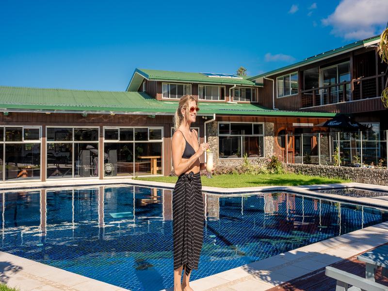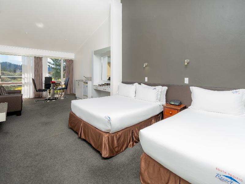 Ubicado en 5 hectáreas de hermosos jardines, el South Pacific Resort es el hotel más grande y con la mejor ubicación en la Isla Norfolk. El hotel está a un corto paseo del centro comercial y a cinco minutos de la playa, el campo de golf y la histórica zona de Kingston. El hotel ofrece entretenimiento regular con sus propias y populares noches temáticas de pub inglés antiguo. Ya sea cenando en el nuevo restaurante Cooks' Landing o tomando cócteles junto a la piscina, el South Pacific Resort te ofrece el lugar perfecto para relajarte y descansar en Norfolk. El hotel cuenta con 67 espaciosas habitaciones que incluyen 39 Garden, 16 Superior, 2 Deluxe, 5 Suite Eveleen (de reciente construcción), 3 Suite Penthouse y 2 apartamentos independientes, todos con TV, ventiladores, refrigeradores, secadores de pelo, teléfono DDI y servicio de té y café.
