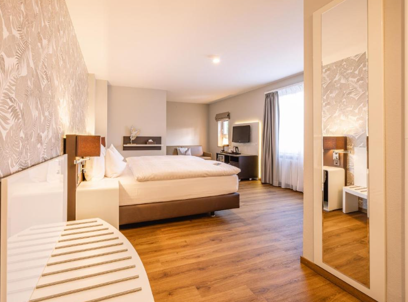 El Hotel Spalentor, un acogedor establecimiento de 4 estrellas en el corazón de Basilea, ofrece una estancia cómoda y elegante a pocos pasos del casco antiguo y la famosa Puerta de Spalen. Sus modernas habitaciones están equipadas con aire acondicionado, Wi-Fi gratuito, cafetera Nespresso y minibar. El hotel dispone de gimnasio, bicicletas gratuitas para explorar la ciudad y un encantador jardín interior. Además, ofrece desayuno buffet con productos frescos y un bar acogedor para relajarse al final del día. Ideal tanto para viajeros de negocios como para turistas que buscan confort y ubicación privilegiada.