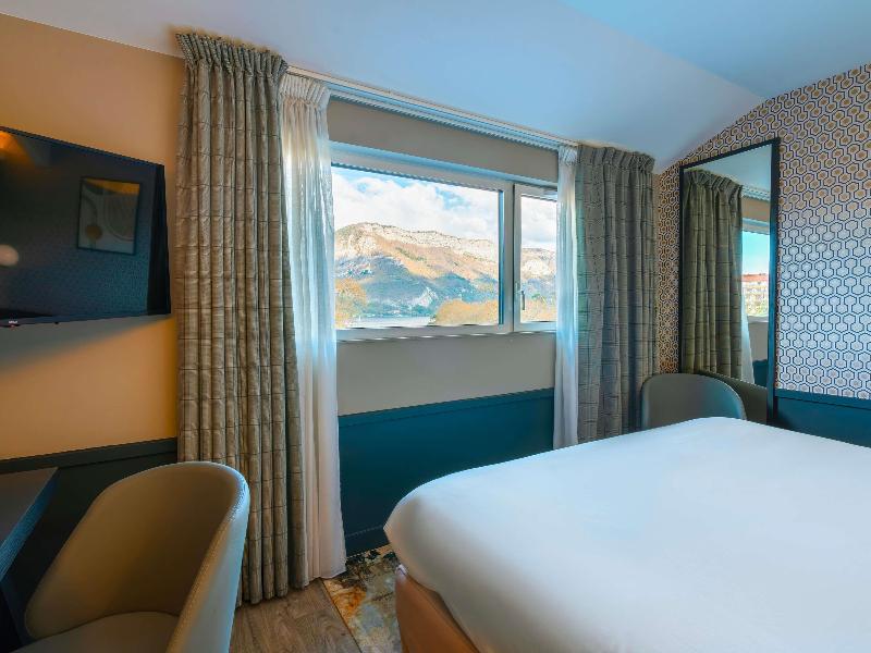 Agradable hotel muy bien situado con vista al lago y cerca de la Annecy de los canales.
