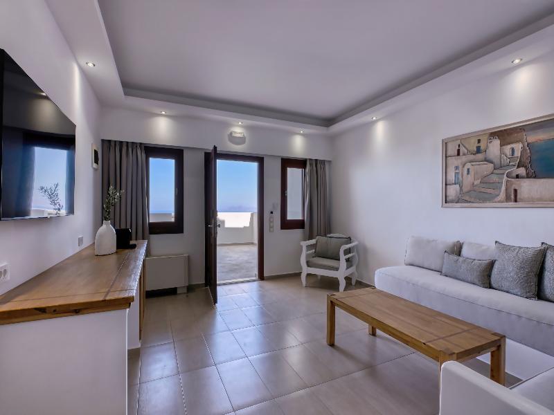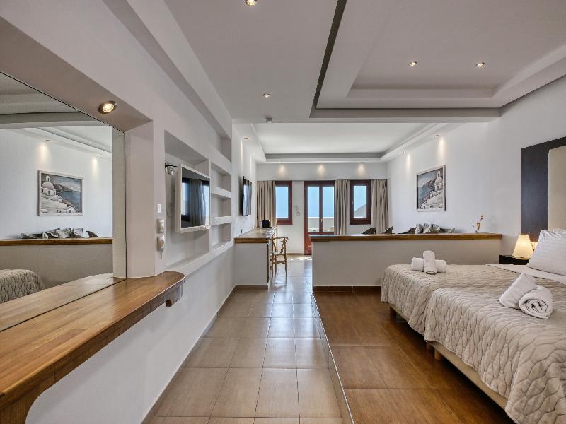 El hotel está situado en la ladera de la localidad de Santorini, a solo 10 minutos a pie de su centro. Se encuentra a 7 km del aeropuerto y a 7 km del puerto de Athinios. El complejo consta de seis edificios independientes diseñados según la arquitectura tradicional local. Dispone de 8 tipos de alojamiento, incluidas suites con piscina privada. Todas las unidades están amuebladas buscando combinar las comodidades modernas con la sencillez de la tradición local. El hotel también ofrece una piscina exterior de dos niveles, una zona de playa privada, un bar y un restaurante. Hay wifi gratuito disponible en todo el establecimiento, que cuenta con aire acondicionado.
