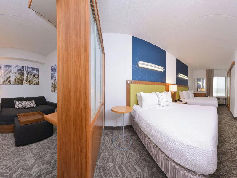 Ubicado en el distrito financiero de Durham, el SpringHill Suites by Marriott Durham Chapel Hill es un punto de partida ideal para explorar la zona. Un corto trayecto en coche te lleva a Duke University, University of North Carolina o a la animada Franklin Street. Este hotel ofrece una variedad de servicios tanto para viajeros de negocios como de placer, incluyendo una piscina cubierta, jacuzzi y gimnasio abierto las 24 horas. Manténte conectado con el wifi gratuito o busca recuerdos en la tienda de regalos. Las 130 habitaciones con aire acondicionado disponen de cocina americana, cómodas camas con colchones con pillow-top y ropa de cama de primera calidad, además de sofás cama dobles. Disfruta de acceso a internet por cable e inalámbrico gratuito, un televisor LCD de 36 pulgadas con canales por cable y un periódico gratuito cada mañana. Empieza el día con el desayuno bufé gratuito y, más tarde, cena en el restaurante del hotel o toma un aperitivo en la tienda de delicatessen. Relájate con una copa en el bar/salón. Para tus necesidades de negocios, el hotel ofrece un centro de negocios abierto las 24 horas, check-in exprés y más de 90 metros cuadrados de espacio para reuniones y conferencias.