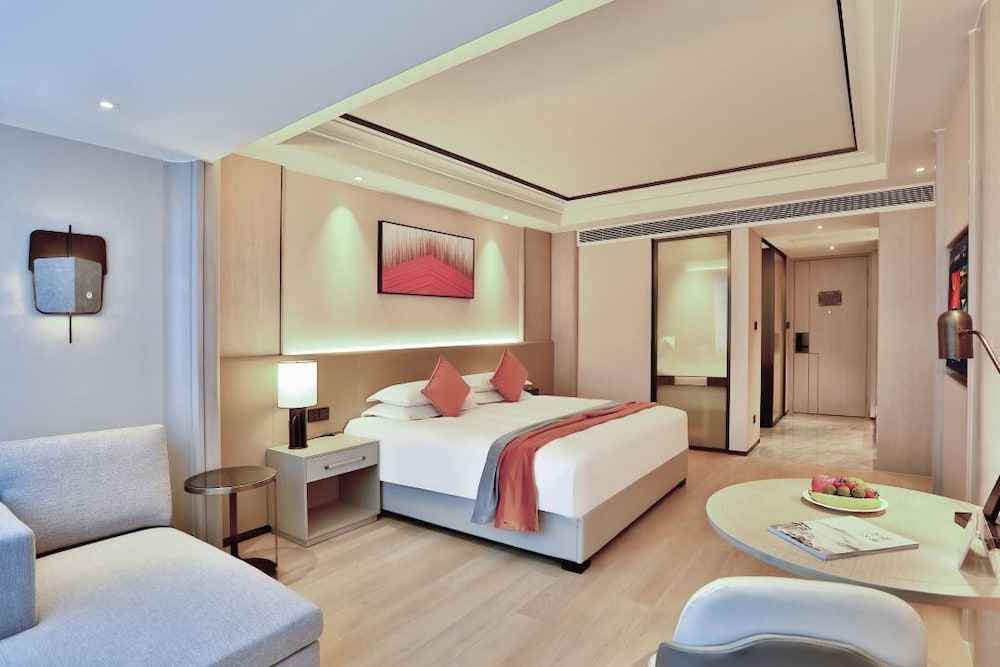 Las instalaciones y servicios incluyen un punto de venta de alimentos y bebidas abierto las 24 horas, aire acondicionado, servicio de transporte al aeropuerto, bar, salón de banquetes, centro de negocios, aparcamiento, wifi gratuito, té y café de cortesía en la habitación, conserjería, salas de conferencias, ascensores, salida exprés, salas de exposiciones, clases de fitness, gimnasio, servicio de limpieza diario, servicio de lavandería, acceso al salón, salas de reuniones, personal multilingüe, servicio de maleteros, servicio de habitaciones, caja fuerte, spa y piscina exterior.Las habitaciones cuentan con radio AM/FM, adaptador para teléfono, despertador, bañera, baño, acceso a operador, convertidores de voltaje, servicio de habitaciones, televisión, TV por cable a color con control remoto, teléfono, almohadas de plumas, habitación adaptada para personas con movilidad reducida, centro de entretenimiento, agua mineral gratuita a diario, teclado inalámbrico y servicio de despertador.Dirección: Bloque B, Edificio Guanrui, Calle Yuhangtang 1993, Distrito de Yuhang, Hangzhou, Zhejiang, China