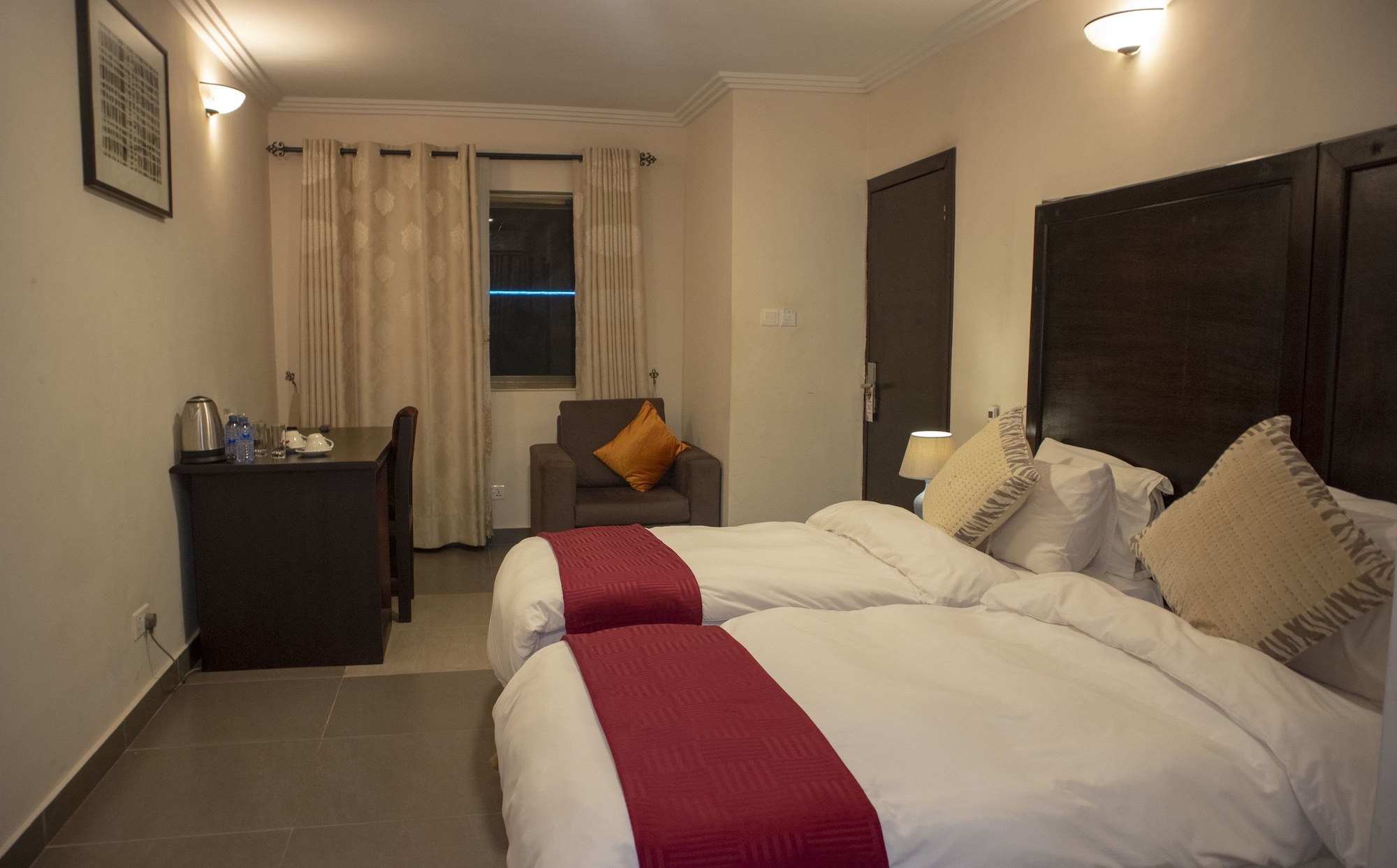 Si te alojas en Ssnit Guest House, en Acra (North Ridge), podrás llegar fácilmente a Calle comercial de Oxford Street y a Embajada de los Estados Unidos. Esta casa de huéspedes se encuentra cerca de Ghana State House (centro de conferencias) y de Centro Internacional de Conferencias de Accra. Te sentirás como en tu propia casa en cualquiera de las 18 habitaciones con aire acondicionado y televisor LED. La conexión a Internet wifi gratis te mantendrá en contacto con los tuyos; también podrás ver tu programa favorito en el televisor con canales por satélite. El baño privado está provisto de bañera profunda y cabezal de ducha tipo lluvia. Entre las comodidades, se incluyen escritorio, hervidor eléctrico y teléfono. Con una terraza y jardín donde descansar y comodidades como conexión a Internet wifi gratis, ¡no te faltará de nada! Encontrarás también un televisor en la zona común y una zona de pícnic. Si tienes hambre, pasa por el restaurante de esta casa de huéspedes, que ofrece almuerzos y cenas, o llama al servicio de habitaciones con horario limitado. Qué mejor forma de acabar el día que con una bebida en el bar o lounge. Se ofrece un desayuno continental gratuito todos los días de 6:30 a 9:30. Tendrás periódicos gratuitos en el vestíbulo, un servicio de recepción las 24 horas y consigna de equipaje a tu disposición. Esta casa de huéspedes pone a tu disposición 3 salas de reuniones donde celebrar todo tipo de eventos. Se ofrece un servicio de transporte desde el aeropuerto hasta el hotel gratuito (disponible las 24 horas).