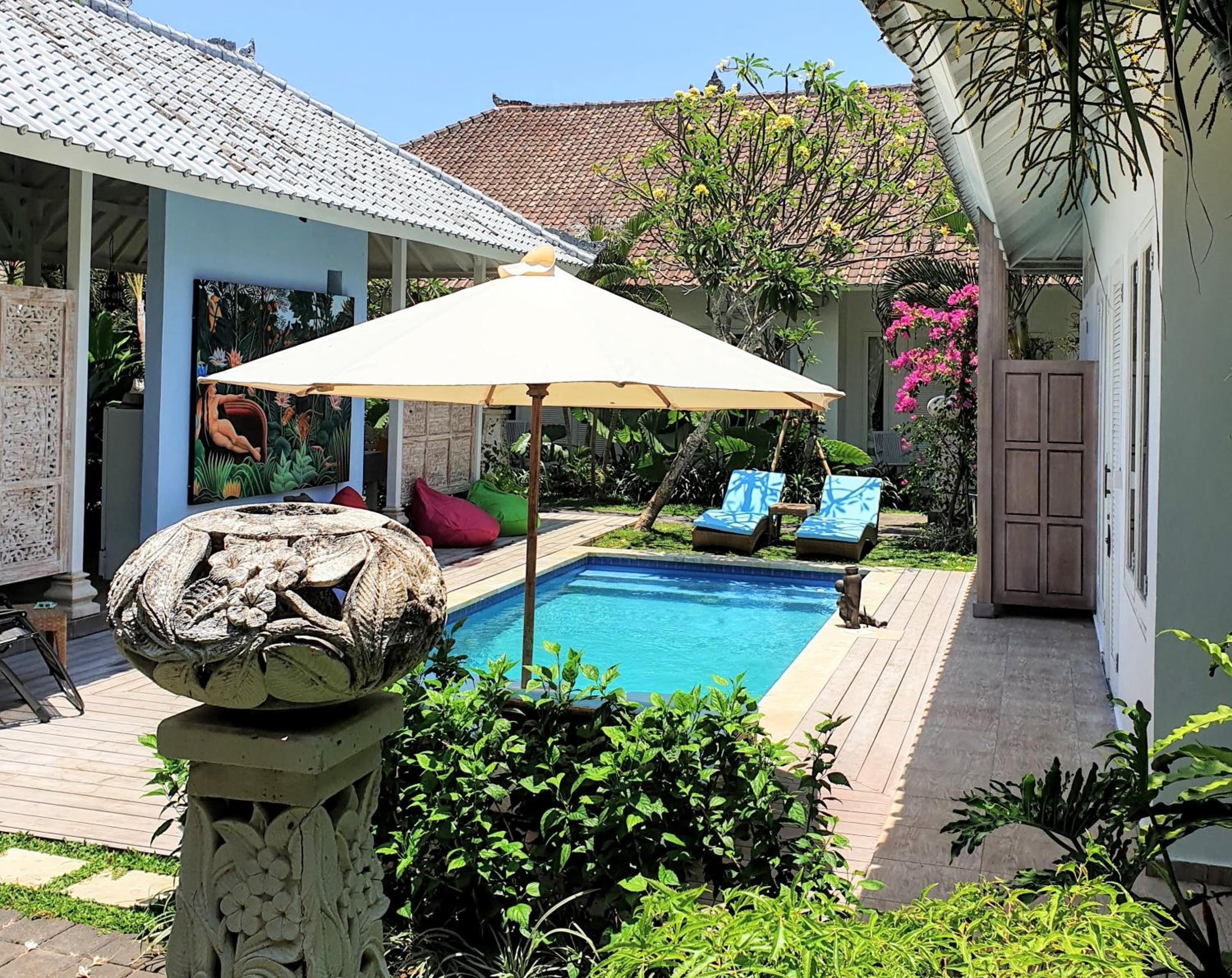 Si te alojas en Starling Villas Bali, en Denpasar (Sanur), estarás a pocos minutos de Consulado Honorario de Hungría y Playa de Sanur. Este hotel se encuentra cerca de Consulado Honorario de Alemania y de Consulado Honorario Británico.Habitaciones Reserva una de las 6 habitaciones climatizadas, todas dotadas de cocina básica con frigorífico/congelador grande y placa de cocina. Las habitaciones disponen de patio. La conexión a Internet wifi gratis te permite comunicarte con los tuyos, y en tus ratos libres tendrás un televisor LCD con canales por satélite para entretenerte. Las comodidades incluyen caja fuerte y escritorio, además de un servicio de limpieza disponible todos los días. Con piscina al aire libre y muchas otras instalaciones recreativas a tu disposición, no te quedará ni un minuto libre. Tienes también una terraza y jardín donde sentarte a contemplar el paisaje. Encontrarás también conexión a Internet wifi gratis, servicios de conserjería y área para parrillas.Para comer Todos los días se sirve un desayuno continental gratuito.Servicios de negocios y otros Tendrás servicio de tintorería y depósito de equipaje a tu disposición. Hay un aparcamiento sin asistencia gratuito disponible.
