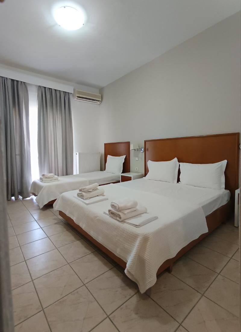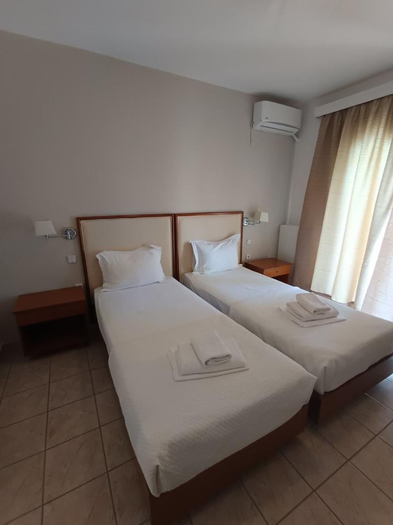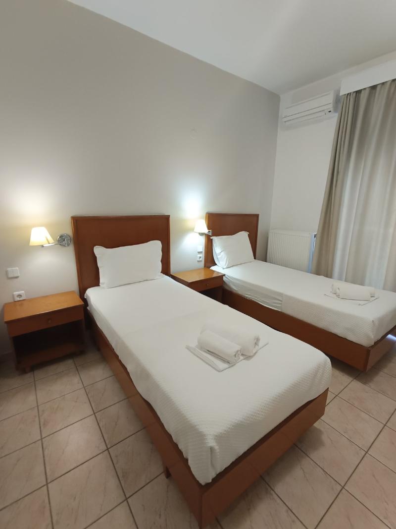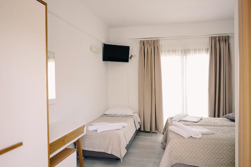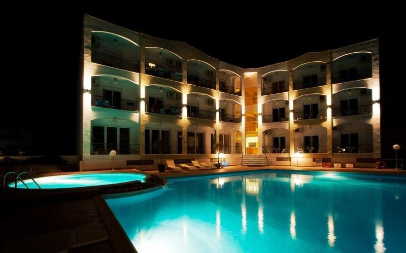 El Stavros Beach Hotel, un encantador hotel familiar de 3 estrellas, está convenientemente ubicado cerca de Stavros Beach y del centro de la ciudad. El hotel consta de dos edificios en torno a una refrescante piscina. El Edificio A, la sección renovada, alberga habitaciones dobles, triples, familiares y suites junior. El Edificio B ofrece cómodas habitaciones estándar. Todas las habitaciones cuentan con balcones con vistas a la piscina o a los tranquilos jardines, y están equipadas con TV, nevera, wifi gratuito y aire acondicionado. Los huéspedes pueden disfrutar de una variedad de servicios, incluyendo un bar junto a la piscina que sirve café, bebidas y aperitivos, un restaurante que ofrece desayuno y cena tipo buffet, y piscinas separadas para adultos y niños. La recepción, abierta todos los días de 8:00 a 00:00, ofrece servicios útiles como traslados al aeropuerto, alquiler de coches/motos/bicicletas, servicio de taxi e información sobre excursiones. Numerosos restaurantes y tiendas se encuentran a tan solo 50 m del hotel.