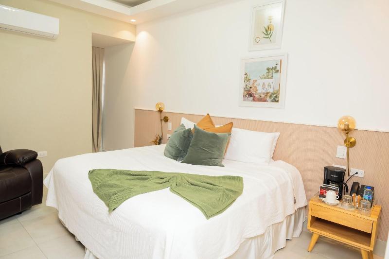 Olvídate del estrés con los masajes y tratamientos faciales disponibles. Encontrarás también conexión a Internet wifi gratis, una peluquería y servicio de celebración de bodas. Si quieres comer algo de cocina fusión, ve a Boil Café, bistró con un bar o lounge. También tienes una cafetería a tu disposición. Se ofrece un desayuno a la carta gratuito todos los días de 08:00 a 11:00. Tendrás un servicio de recepción las 24 horas, consigna de equipaje y un ascensor a tu disposición. Pagando un pequeño suplemento podrás aprovechar prestaciones como servicio de transporte al aeropuerto (ida y vuelta) disponible 24 horas y aparcamiento sin asistencia (de pago). Te sentirás como en tu propia casa en cualquiera de las 17 habitaciones con decoraciones diferentes, equipadas con minibar y Smart TV. Las camas cuentan con colchones viscoelásticos y sábanas de algodón egipcio para descansar plácidamente. La conexión wifi gratis te mantendrá en contacto con los tuyos. Además, podrás disfrutar de canales digitales. El cuarto de baño está provisto de ducha y secadores de pelo. Las distancias se expresan en números redondos. Palacio de Bellas Artes: 0, 6 km- Malecón: 0, 6 km- Palacio de Bellas Artes: 0, 7 km- Playa Güibia: 0, 9 km- Plaza de la Cultura: 0, 9 km- Museo de Historia y Geografía: 1 km- Gran Casino Jaragua: 1 km- Casino Diamante: 1, 2 km- Museo del Hombre Dominicano: 1, 2 km- Museo Nacional: 1, 3 km- Teatro Nacional Eduardo Brito: 1, 3 km- Museo de Arte Moderno: 1, 4 km- Parque Hostos: 1, 5 km- El Obelisco Macho: 1, 6 km- Palacio Nacional: 2 km. Aeropuertos más cercanos: Santo Domingo (JBQ-La Isabela Intl. ): 19, 1 km Santo Domingo (SDQ-A. Internacional Las Américas): 29, 3 km Aeropuerto recomendado para Stay Here Suites: Santo Domingo (SDQ-A. Internacional Las Américas).