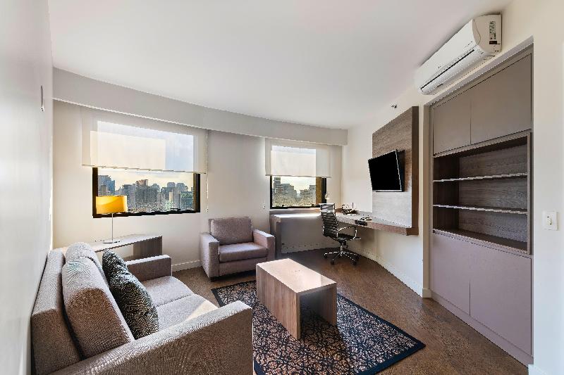 Disfruta de todo lo que São Paulo te ofrece al alojarte en el Staybridge Suites São Paulo. Ubicado en el moderno distrito de Itaim Bibi, nuestro hotel está junto a algunos de los mejores restaurantes y bares de São Paulo. Podrás disfrutar de la animada vida nocturna de Itaim Bibi a solo unos pasos del hotel. Asegura tu alojamiento para los próximos eventos en São Paulo, como los conciertos de The Weeknd, Bruno Mars y Iron Maiden, el Primavera Sound Festival y la feria CCXP 2024. Nos rodean excelentes centros comerciales: el Brascan Open Mall, un centro comercial al aire libre en la calle João Cachoeira, el Iguatemi São Paulo Mall y el JK Iguatemi Mall. Para quienes buscan más tranquilidad, estamos a poca distancia del Parque Ibirapuera y del Parque do Povo. Después de un día explorando la ciudad, relájate en las cómodas habitaciones del Staybridge Suites São Paulo, que varían de 38 m² a 80 m². Nuestro acogedor hotel en Itaim Bibi ofrece varios servicios y beneficios: desayuno incluido, estacionamiento incluido, cocina americana en todas las habitaciones, piscina al aire libre, gimnasio, centro de negocios abierto las 24 horas y wifi gratis en todo el hotel. Nuestro Restaurante Família Castro sirve deliciosas opciones para el desayuno, el almuerzo y la cena. ¡Admitimos mascotas! Tu perro o gato será bienvenido en el Staybridge Suites São Paulo.