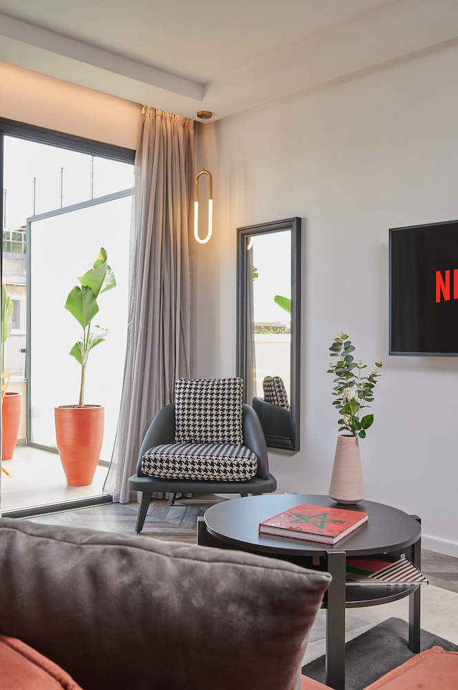 Las instalaciones y servicios incluyen aire acondicionado, conexión Wi-Fi gratuita, ascensor, caja fuerte y aparcamiento.Las habitaciones disponen de aire acondicionado, conexión Wi-Fi gratuita, cocina americana, balcón o terraza, caja fuerte, cafetera/tetera, ducha, secador de pelo y televisión.Dirección: 76 rue oued melouya, 10080 Rabat, Marruecos