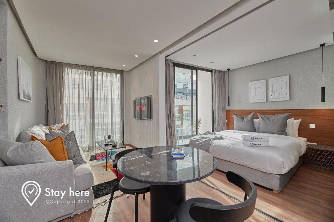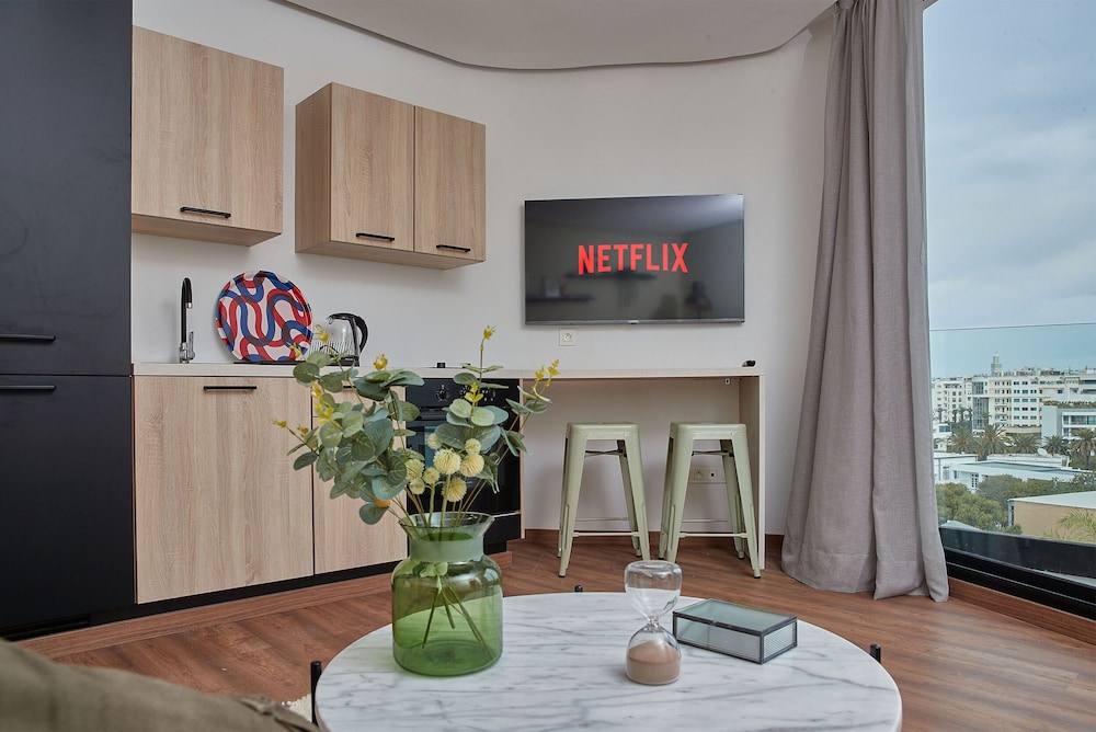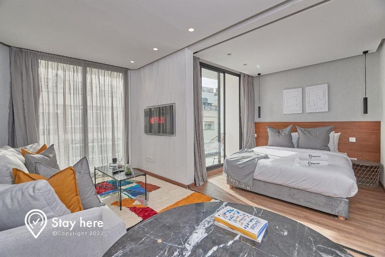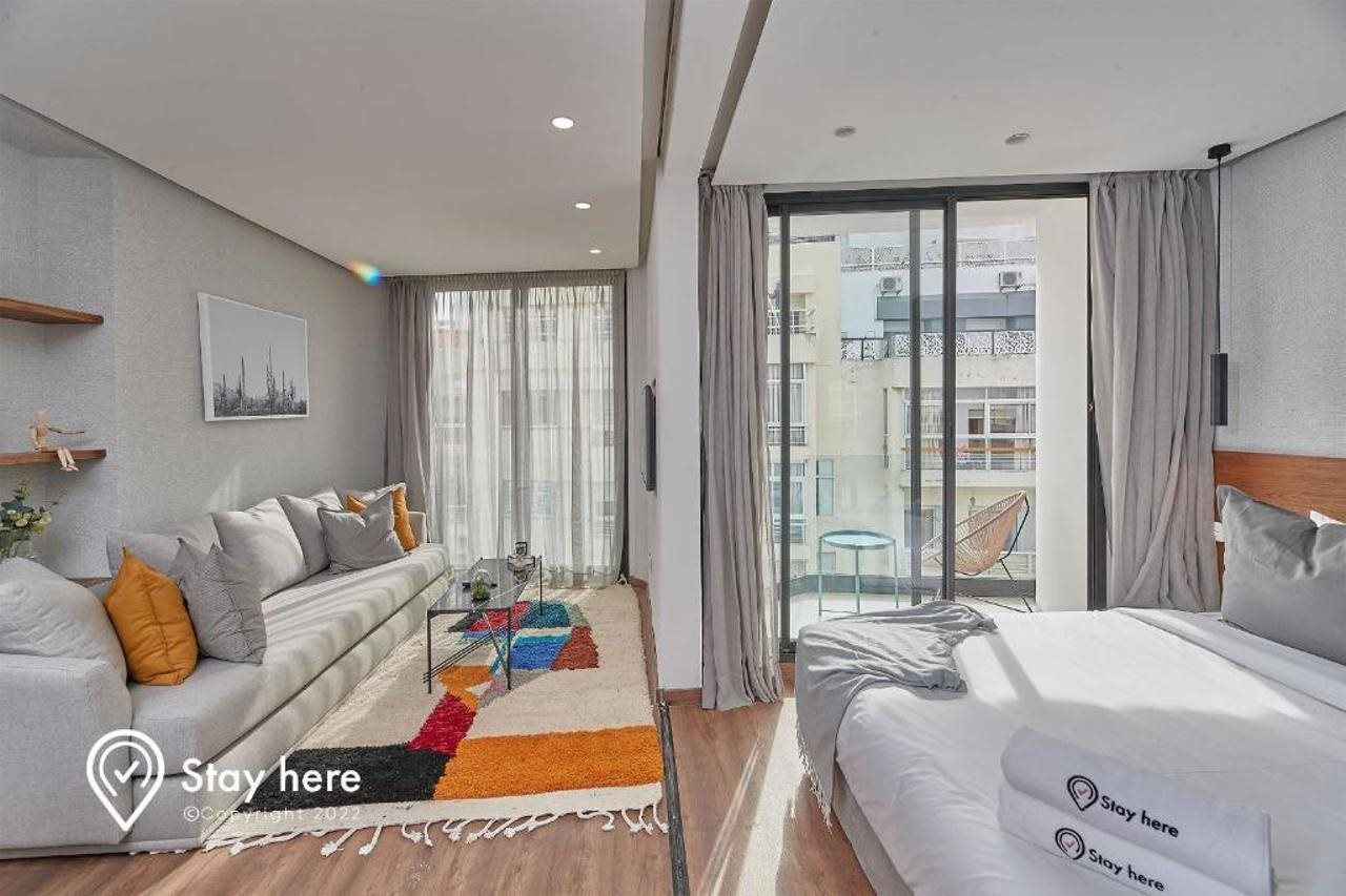Las instalaciones y servicios incluyen aire acondicionado, registro de entrada y salida exprés, personal multilingüe, wifi gratuito y ascensor.La habitación cuenta con aire acondicionado, wifi gratuito, TV, balcón/terraza, cocina americana, nevera, cafetera/tetera, microondas y secador de pelo.Dirección: 13 Ahmed Ennassiri Palmier, 20000 Casablanca, Marruecos