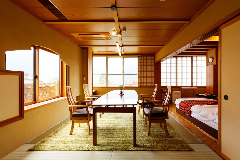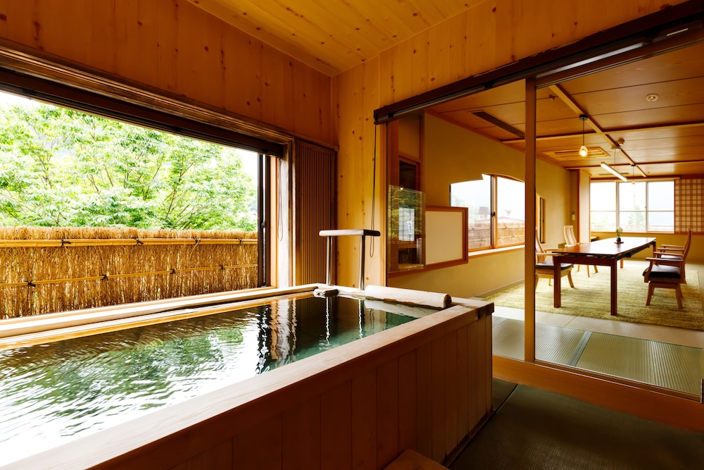 Si eliges Suihouen en Gero, estarás a pocos minutos de Gero Onsen Gassho Village y en las inmediaciones de Templo Onsenji. Este ryokan se encuentra cerca de Sarubobo Shrine y de Gero Onsen.Habitaciones Te sentirás como en tu propia casa en una de las habitaciones con minibar y televisor de pantalla plana. Mantén el contacto con los tuyos gracias a la conexión a Internet wifi gratis. El cuarto de baño está provisto de bañera o ducha, artículos de higiene personal gratuitos y bidé. Las comodidades incluyen caja fuerte y escritorio, además de un servicio de limpieza disponible todos los días.Servicios Con aguas termales y conexión a Internet wifi gratis, entre muchas otras prestaciones, aquí tendrás todo lo que necesitas. Llegarás a las principales atracciones de la zona en un abrir y cerrar de ojos gracias al servicio de transporte gratuito.Para comer Tienes una cafetería a tu disposición para comer algo, pero si lo prefieres, puedes llamar al servicio de habitaciones con horario limitado de este ryokan.Servicios de negocios y otros Tendrás servicio de recepción 24 horas, depósito de equipaje y caja fuerte en recepción a tu disposición. Hay un aparcamiento sin asistencia gratuito disponible.