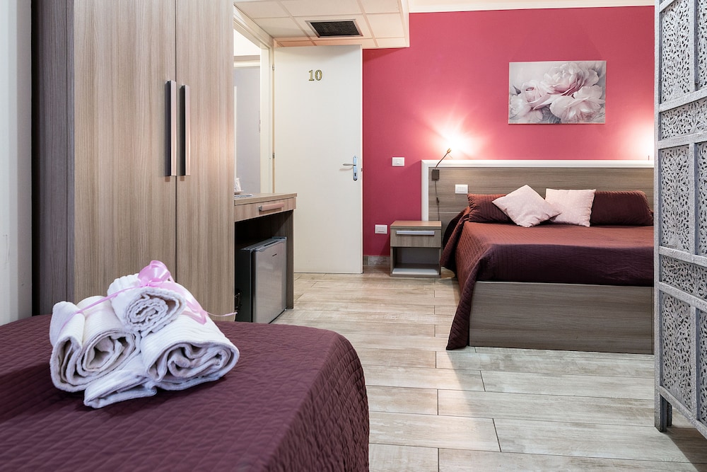 En Suite Room Fiumicino gozarás de una buena ubicación en Fiumicino, cerca de la playa, a poca distancia de Area Archeologica del Porto di Traiano y Necrópolis de Porto Isola Sacra. Esta casa de huéspedes se encuentra cerca de Casa de Amor y Psique y de Ruinas de Case a giardino. Te sentirás como en tu propia casa en cualquiera de las 11 habitaciones con aire acondicionado, frigorífico y televisor de pantalla plana. La conexión a Internet wifi gratis te mantendrá en contacto con los tuyos; también podrás ver tu programa favorito en el televisor con canales digitales. El baño privado con ducha está provisto de artículos de higiene personal gratuitos y bidé. Entre las comodidades, se incluyen escritorio y botella de agua gratuita, además de un servicio de limpieza disponible todos los días. Con bicicletas de alquiler y muchas otras instalaciones recreativas a tu disposición, no te quedará ni un minuto libre. Tienes también una terraza en la azotea y jardín donde sentarte a contemplar el paisaje. Se sirve un desayuno gratuito todos los días, de 7:00 a 10:00. La recepción tiene un horario limitado. Pagando un pequeño suplemento podrás aprovechar prestaciones como servicio de transporte al aeropuerto (ida y vuelta) (disponible las 24 horas) y aparcamiento sin asistencia gratuito.