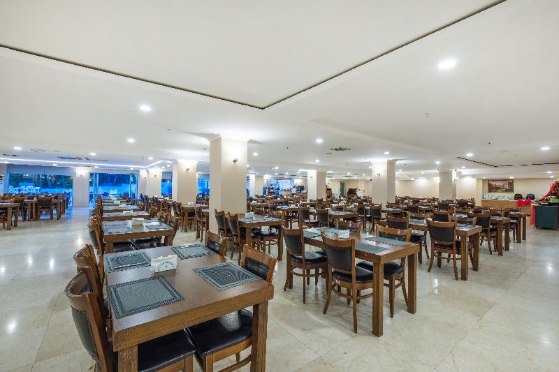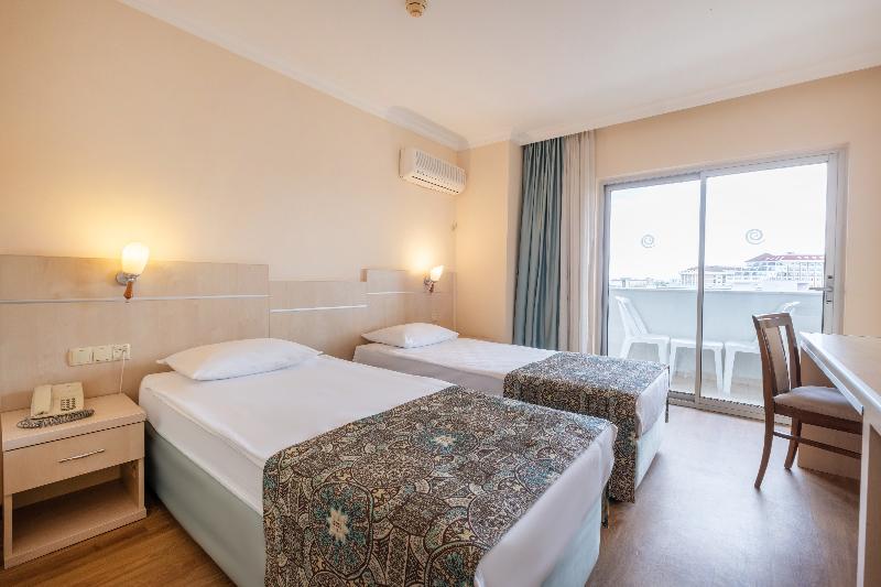 El hotel está a solo 1 km de Side, donde encontrarás instalaciones turísticas y la ciudad antigua. La playa se encuentra a unos 350 m de distancia. La ciudad de Manavgat está a unos 4, 5 km del hotel y Aspendos, con su famoso teatro antiguo, a unos 45 km. El Aeropuerto Internacional de Antalya está a 65 km. El hotel es un edificio de 8 plantas en Side Kumkoy y cuenta con 200 habitaciones estándar, todas ellas alfombradas y con una variedad de útiles comodidades. El hotel tiene 2 piscinas, 1 cubierta y 1 al aire libre, así como una zona de baño para niños, un bar junto a la piscina, tumbonas y sombrillas: todo lo que necesitas para un día relajante junto a la piscina. También puedes utilizar el gimnasio y la sauna. Se ofrecen masajes y tratamientos de spa, así como una variedad de actividades deportivas. El hotel ofrece un programa de entretenimiento para adultos y niños. La habitación de tipo económico no tiene ventana ni balcón.