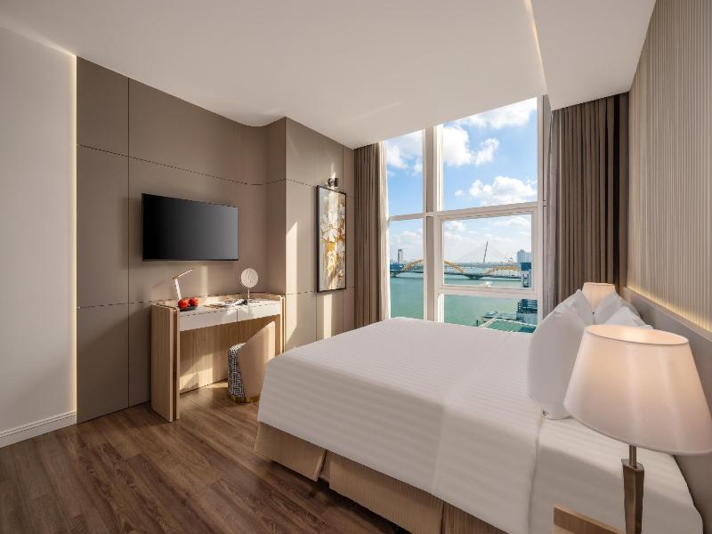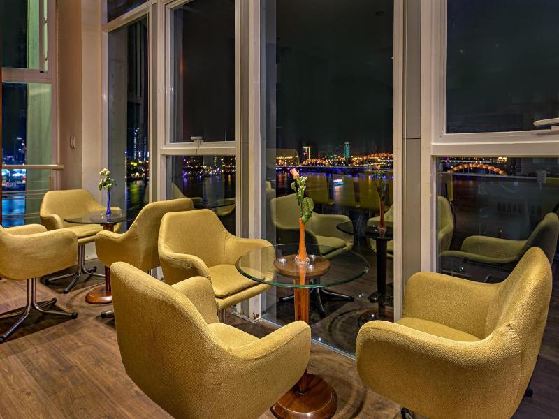 Este hotel, ubicado en el corazón de Da Nang a orillas del pintoresco río Han, ofrece una estancia memorable. Construido en 2008, el hotel presenta una arquitectura e interiores modernos que cumplen con los estándares internacionales. Sus 50 habitaciones con aire acondicionado ofrecen impresionantes vistas a la ciudad y al río. Las comodidades incluyen recepción 24 horas, cambio de divisas, ascensor, cafetería, bar, restaurante, salas de conferencias, acceso a internet, servicio de habitaciones y lavandería, y aparcamiento. Cada habitación cuenta con baño privado, cama king o doble, teléfono de línea directa, TV vía satélite, acceso a internet, caja fuerte, minibar y set de té y café. Los huéspedes pueden disfrutar del gimnasio o jugar al golf en un campo cercano. Las opciones gastronómicas incluyen una variedad de cocina asiática e internacional servida en un romántico restaurante y bar, con desayuno buffet y menús a la carta para el almuerzo y la cena.